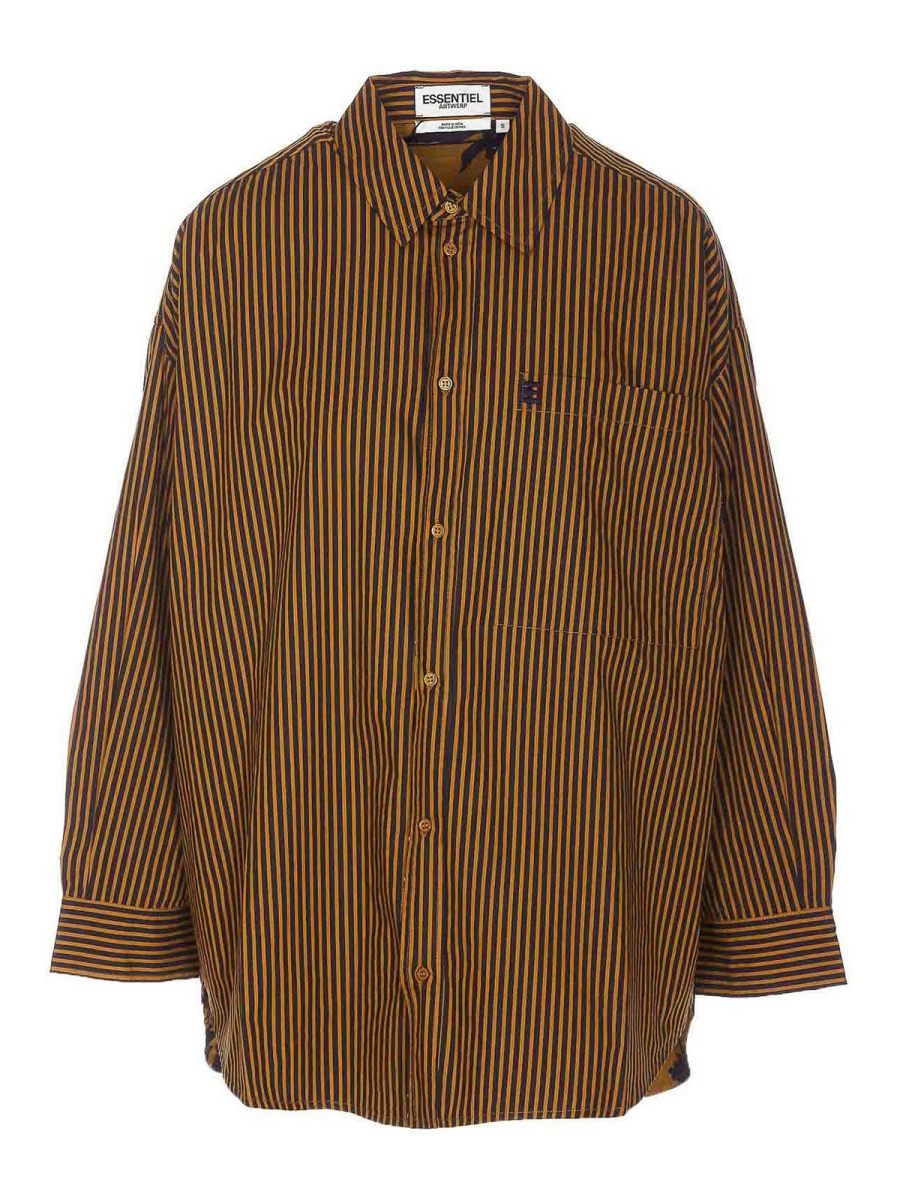 Chemise réversible Essentiel Antwerp Combo Glory à col régulier, manches longues, boutons sur les poignets, à rayures, une poche avec logo brodé, réversible, un côté avec imprimé
