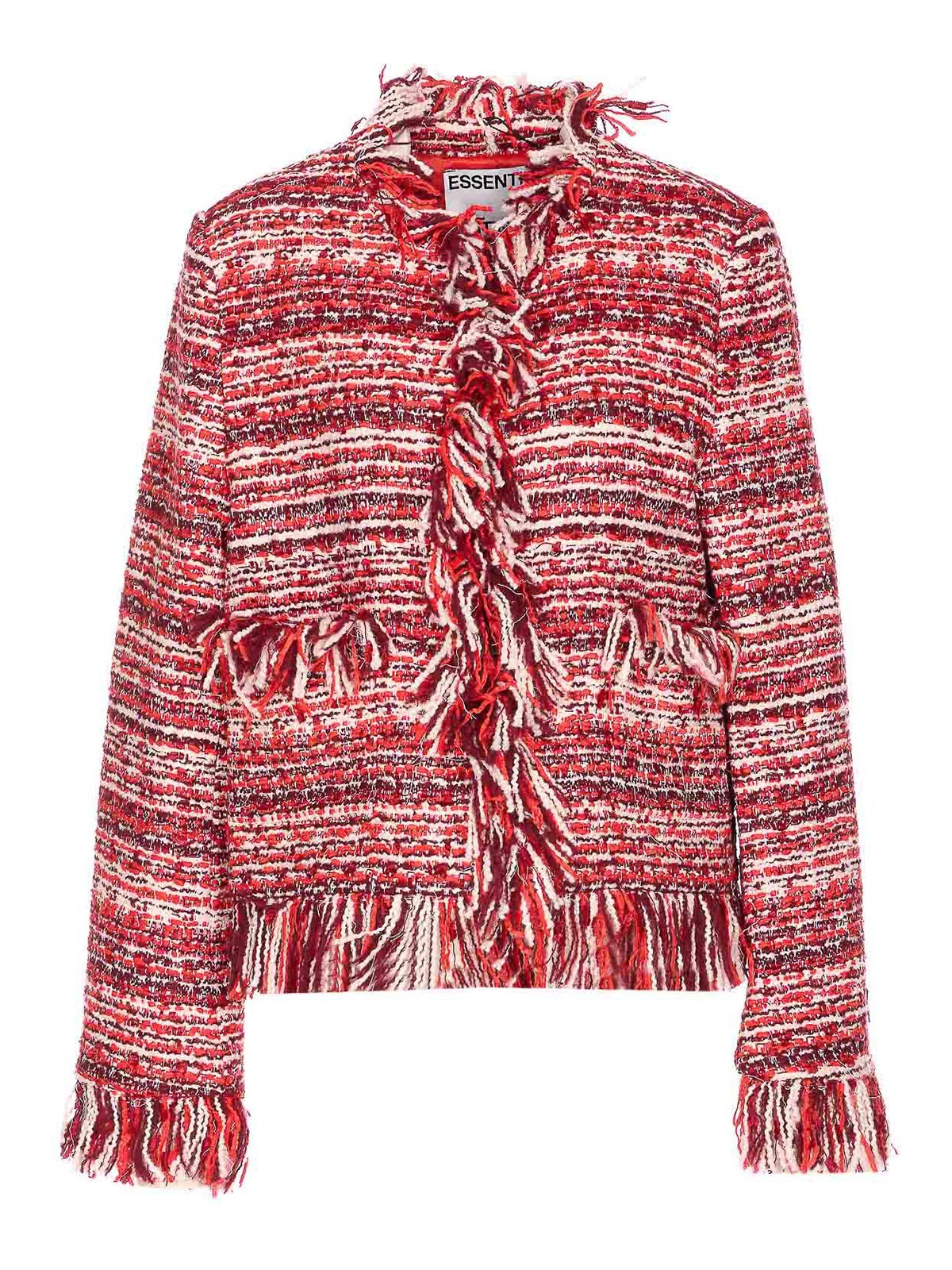 Veste iskra multicolore Essentiel Antwerp à franges, manches longues, crochet, manches longues, poches sur le devant Nom de la couleur du créateur: rouge