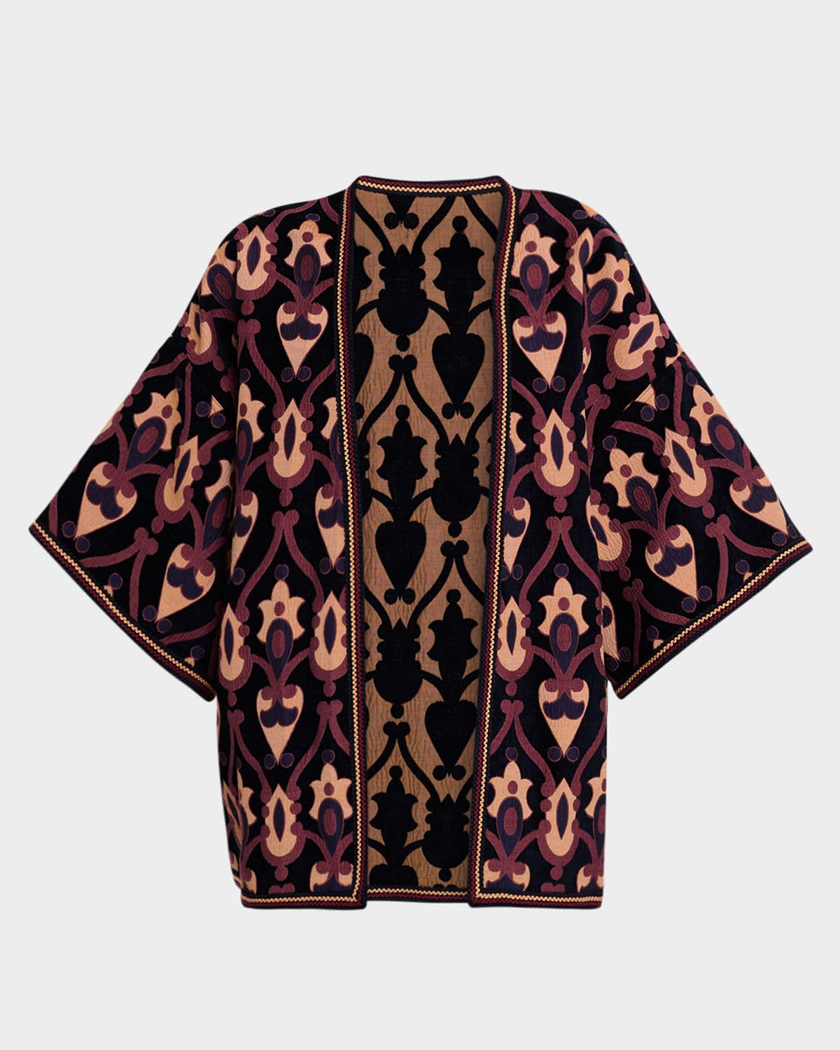 Etro "Kessa" reversible chenille jacket illustrated with an elegant jacquard pattern Open front Wide threequarter sleeves Falls below the hips Straight silhouette Cotton/acrylic/wool Professional cleaning recommended Made in Italy