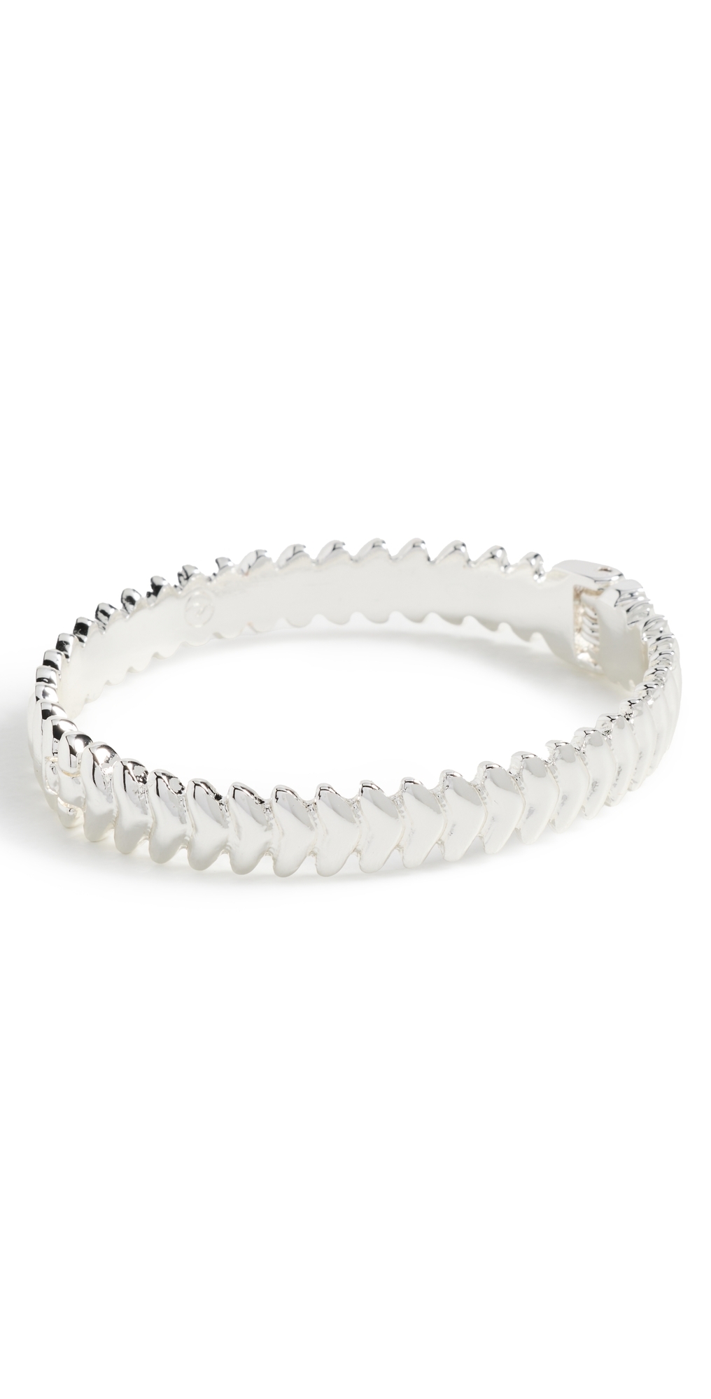 18k silver plated brass. Hook and eye closure. Imported, China. Measurements: Diameter: 2.25in / 6cm