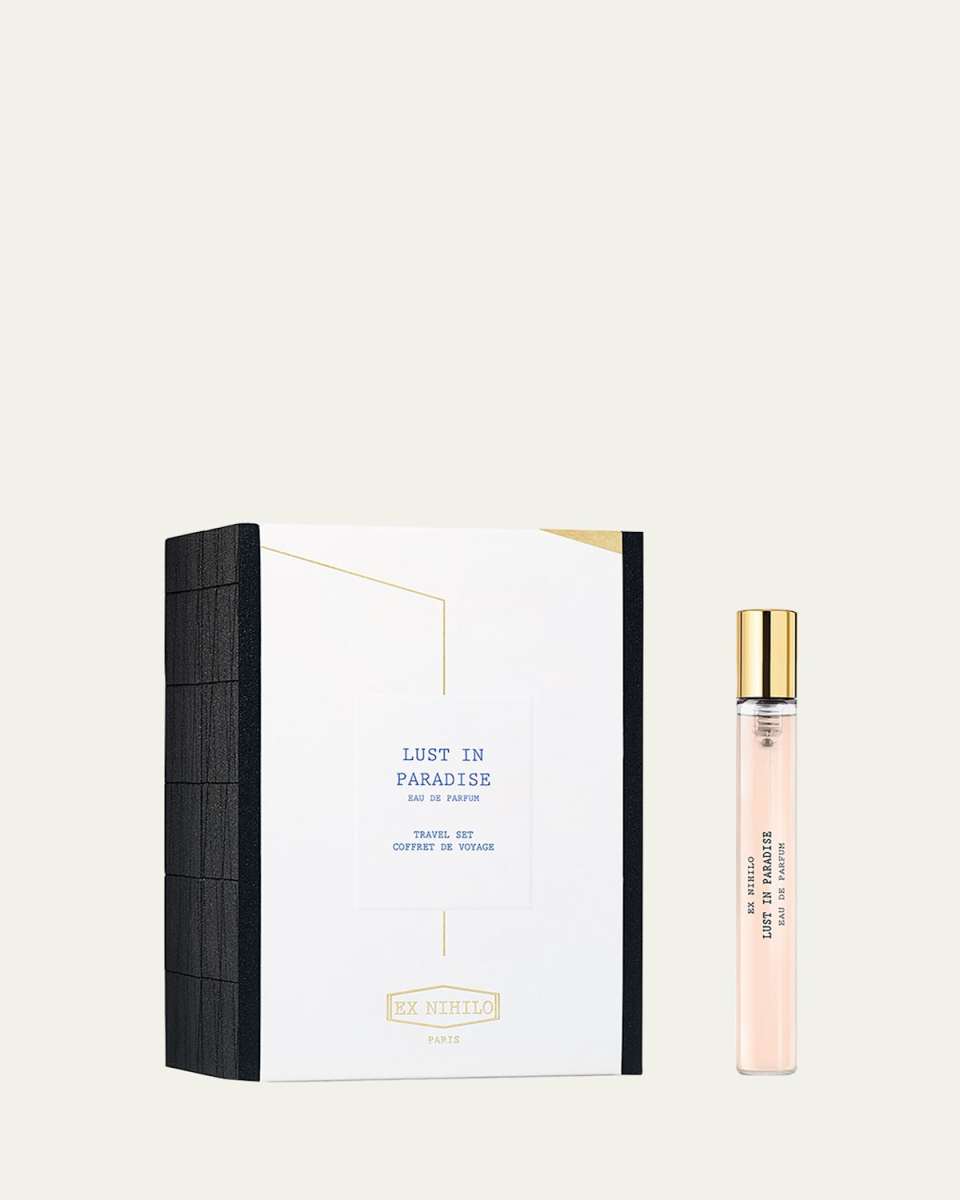 Lust in Paradise embodies a dreamlike and sensual French Riviera. Chosen from a botanical garden, a bright white Peony mingles with Pink Pepper and captivates the senses to the core. A floral waterfall tinged with notes of Lychee brings a fresh and languishing shine. An addictive signature of Cedar wood and Musk leaves the feeling of skin heated by the sun. The hypnotic quintessence of the iconic French Riviera revisited by Louise Turner for Ex Nihilo.Top notes: pink pepper.Heart notes: white peony, lychee.Base notes: white cedar wood, musk, amber.Travel Set, 5 x 7.5 ml