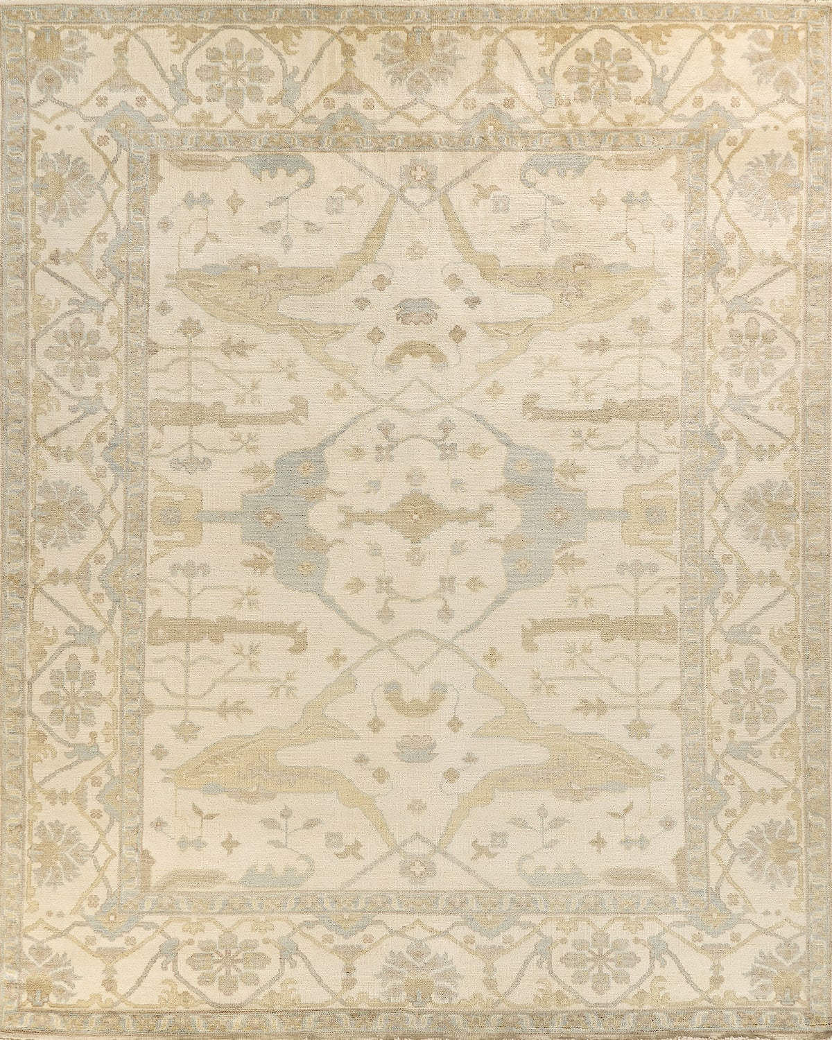 The Antique Weave Oushak rug is to be celebrated for its understated elegance. It is greatly influenced by original antique Turkish Oushak rugs. This Oushak reproduction is handknotted by master weavers capturing the look and spirit of the original Oushak's. Artfully made from handspun New Zealand wool, each rug allows a texture that is soft and luxurious. This rug has set a standard of excellence that will outlast the whims of fashion and without a doubt become tomorrow's antiques! Handknotted in India of 100% New Zealand wool Size is approximate. Imported.