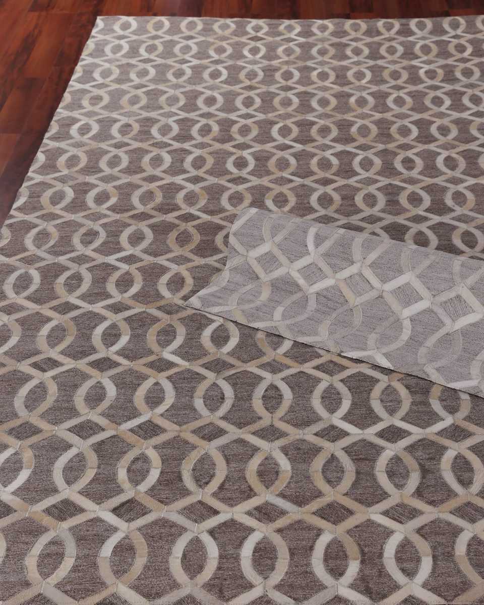 Handstitched hairhide rug by master weavers for a beautiful transitional design. Handcrafted of natural cowhide (India); felt backing. All sizes approximate. We recommend use of a rug pad. Imported.