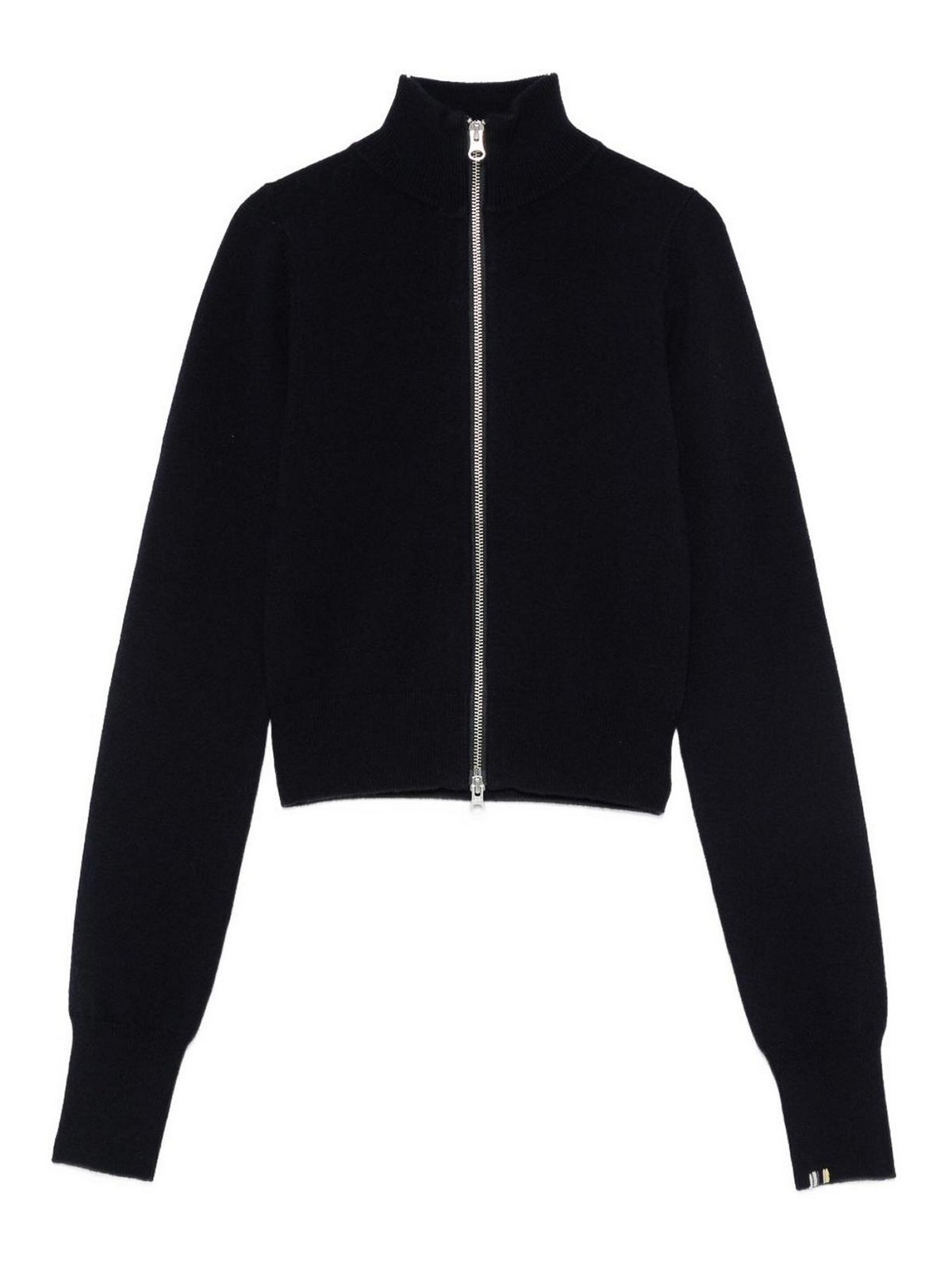 Fermeture zippée bleu marine, col montant, manches longues, manches courtes, poignets côtelés