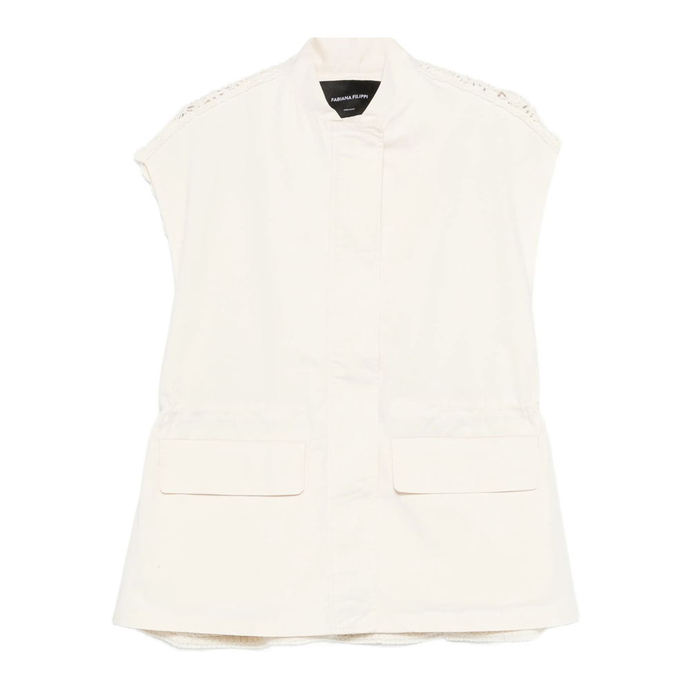 cream stand collar zip fastening flap pockets drawstrings waist sleeveless