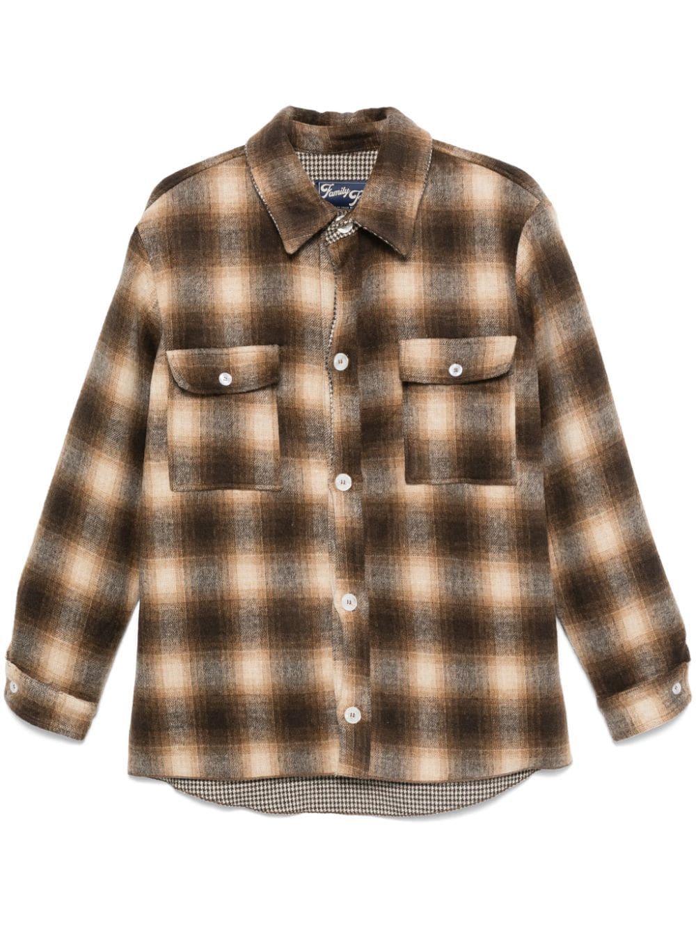 coffee brown felted reversible front button fastening check pattern classic collar two chest flap pockets long sleeves buttoned cuffs rear curved hem front button fastening houndstooth pattern classic collar two front jetted pockets long sleeves buttoned cuffs rear curved hem When buying this unisex item, keep in mind that it is graded in standard men's sizing.