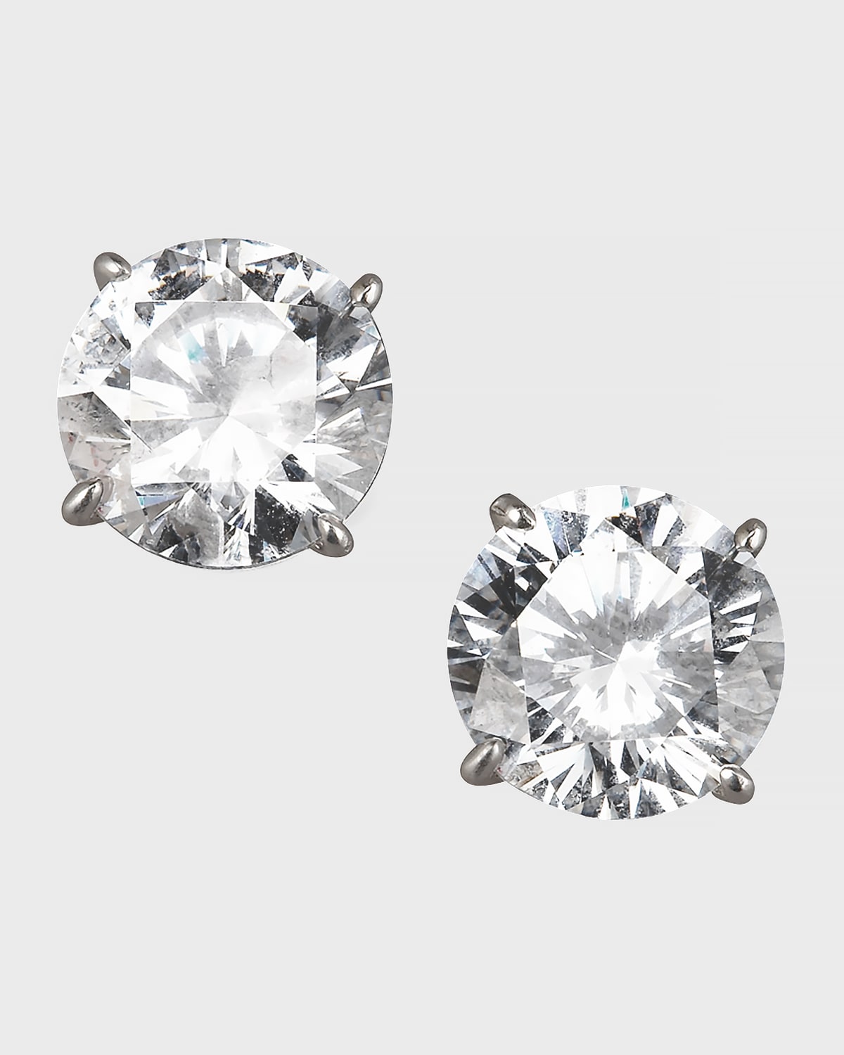 Fantasia by DeSerio earrings in 14karat solid white gold 11mm roundcut cubic zirconia stud 3.50 total carat weight. For pierced ears Made in USA.