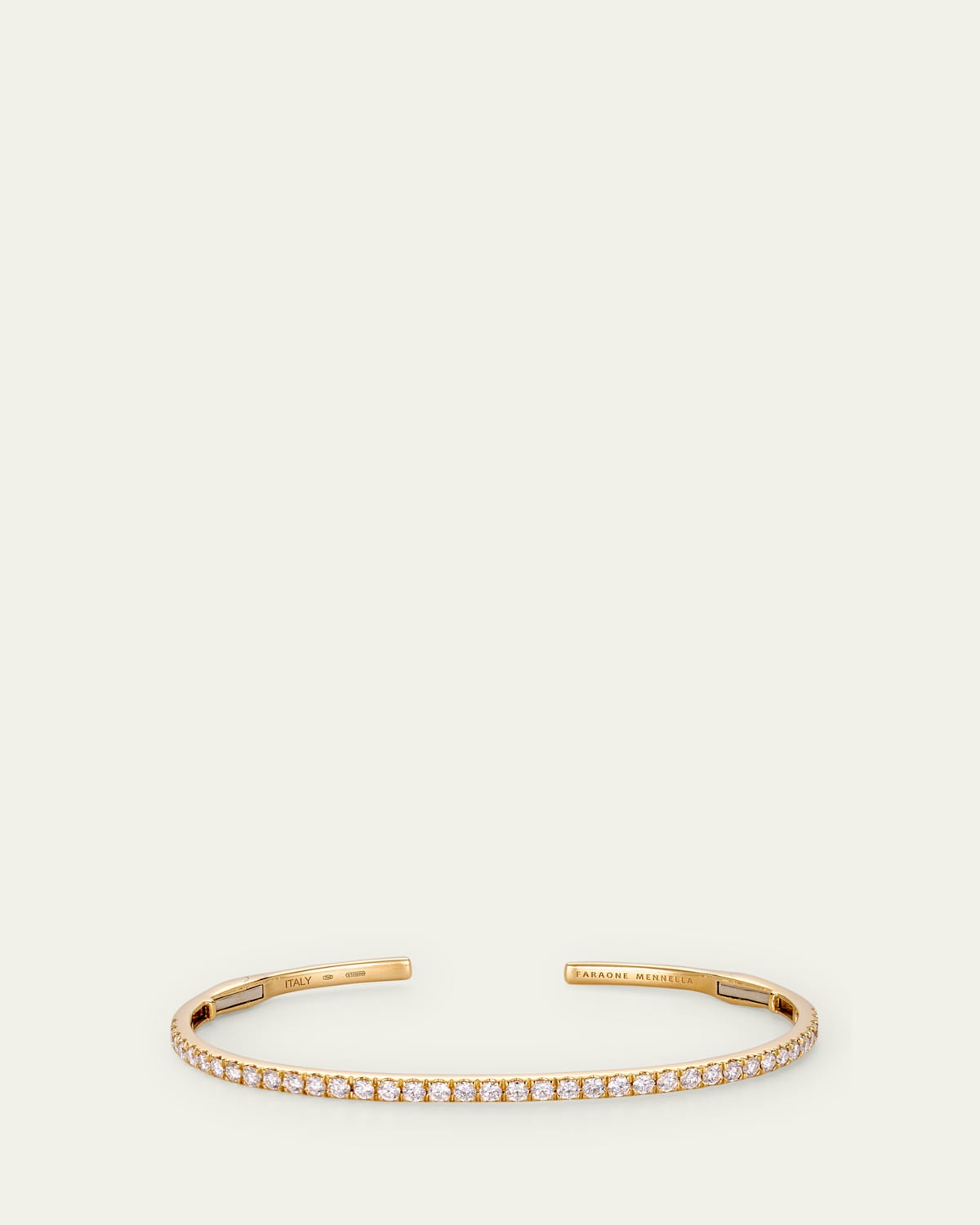 Faraone Mennella crafts this Italian bangle with precious diamonds and a doublehinge opening that combines comfort with luxury. Approx. 6.25" length Polished 18karat yellow gold 1.52 total diamond carat weight Hinged opening eases dress Made in Italy