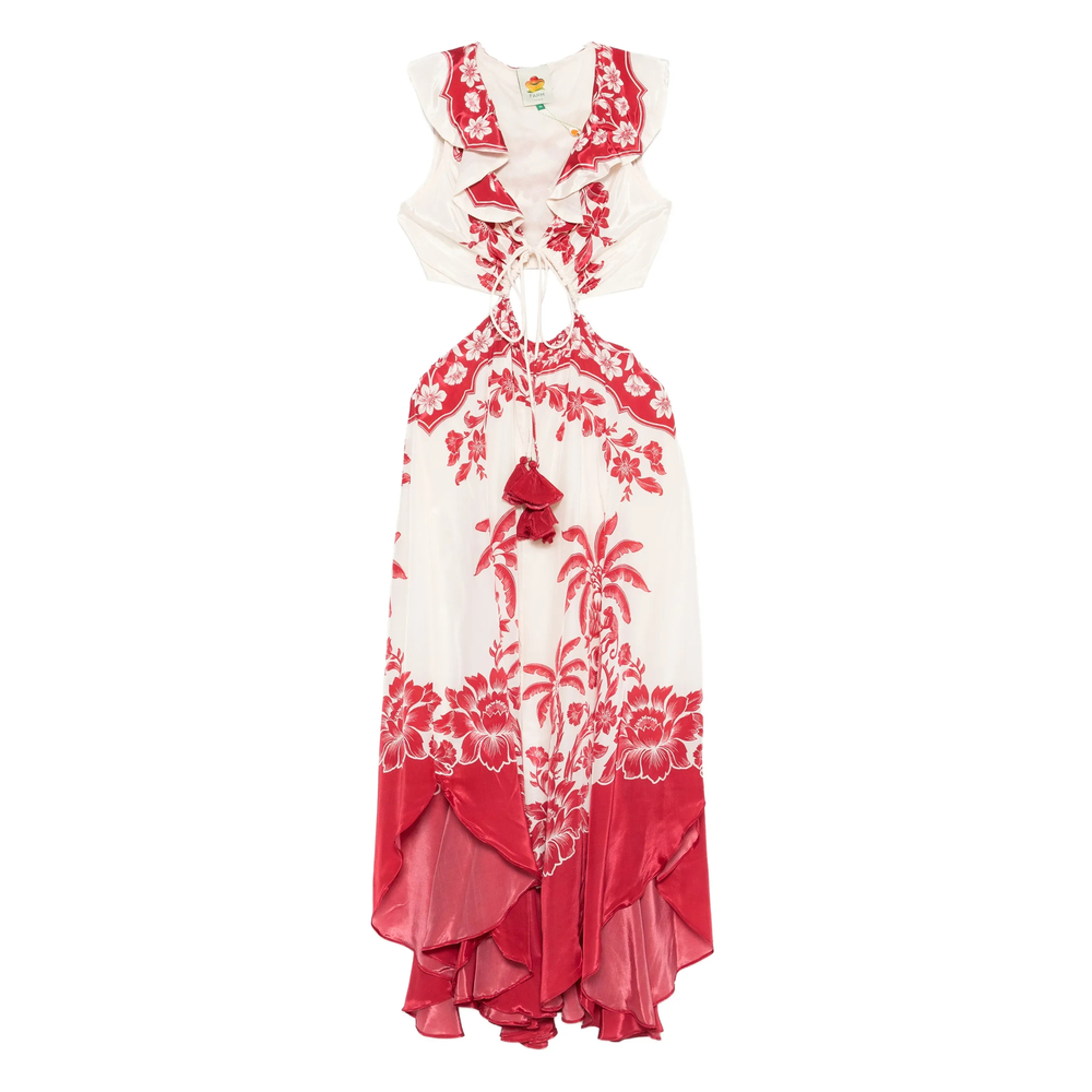 sand floral print cut-out detail ruffles tassel detail asymmetric hem