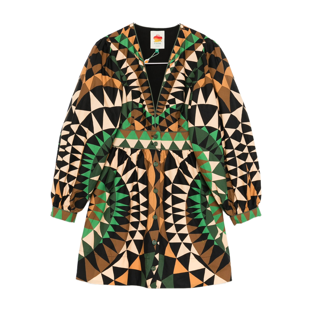 green geometric pattern V-neck button fastening long sleeves buttoned cuffs
