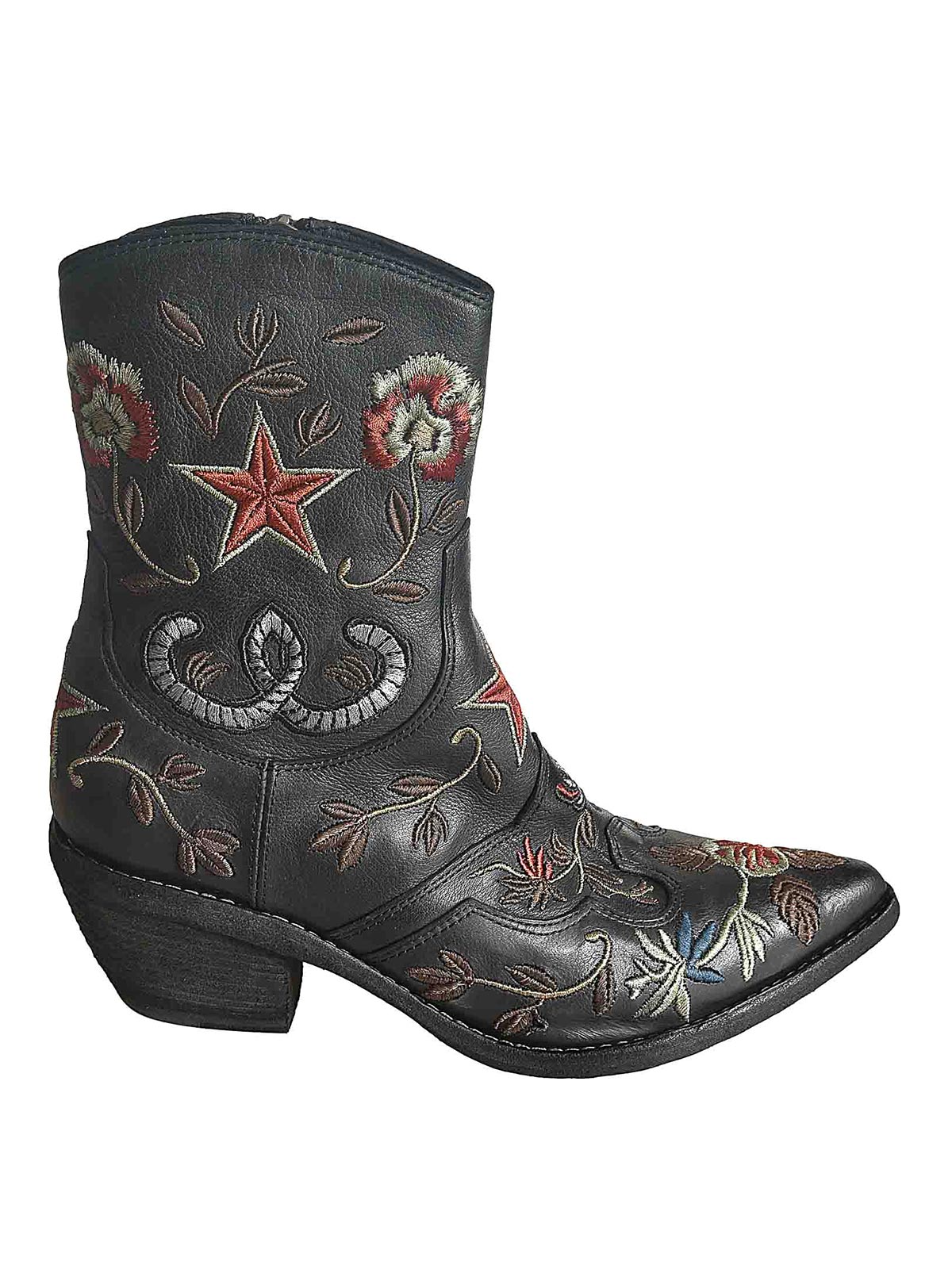 Botte texane en cuir entièrement brodé, fermeture éclair latérale en cuir, étui avec logo