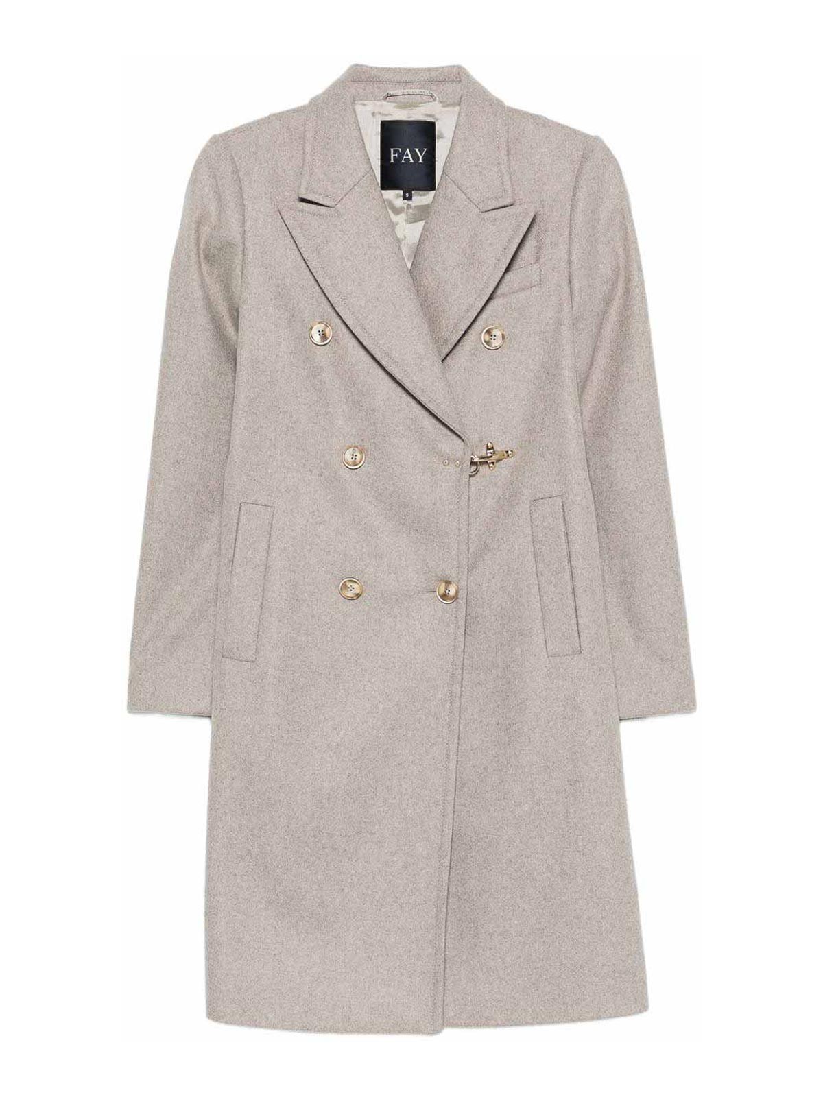 Poches beiges à double boutonnage et boutons ton sur ton, poches passepoilées, manches longues