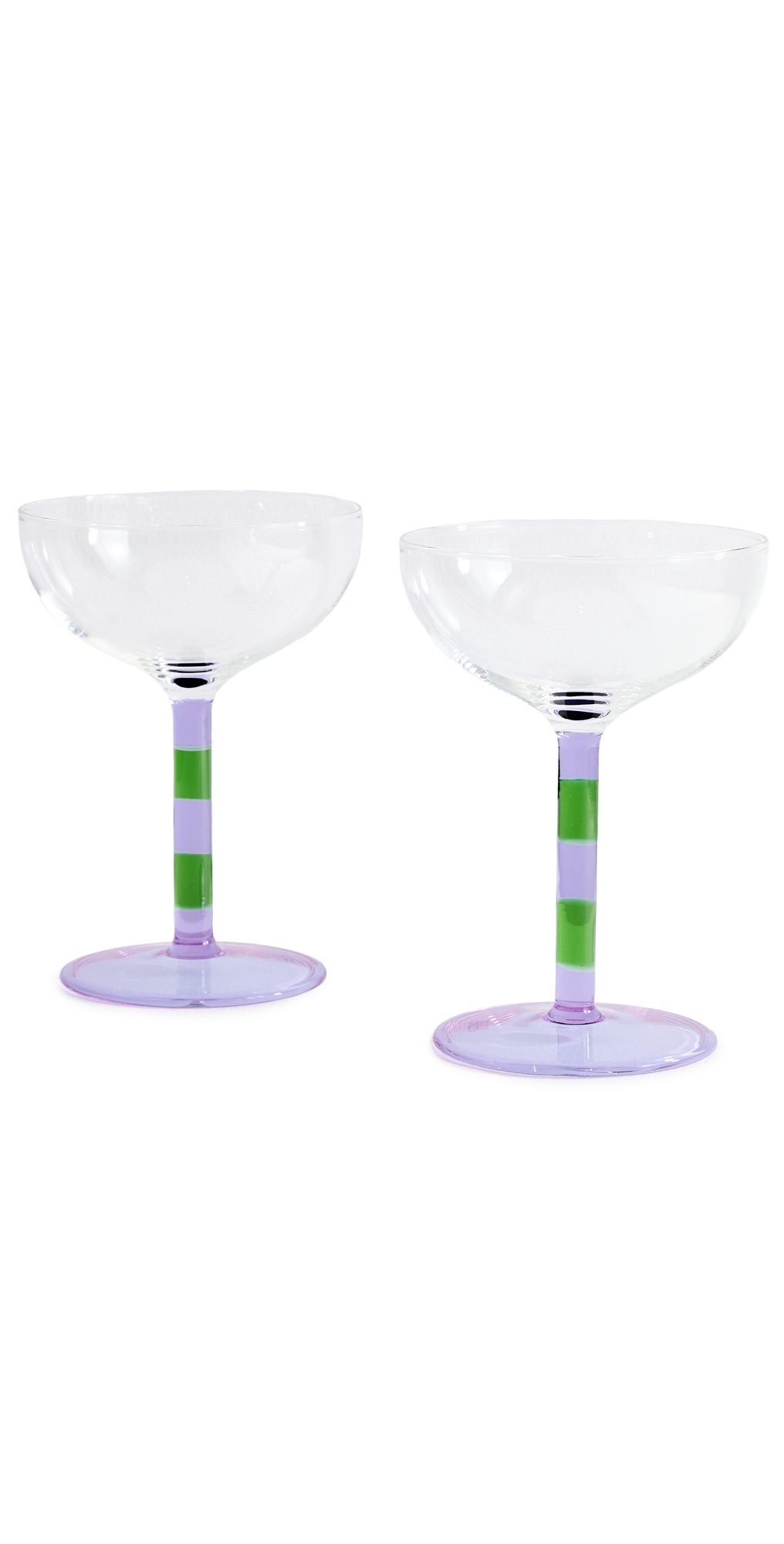 Set of 2. Striped stem. Holds 140ml. Hand blown glass. Imported, China. Measurements: Height: 5in / 13cm Diameter: 3.5in / 9cm