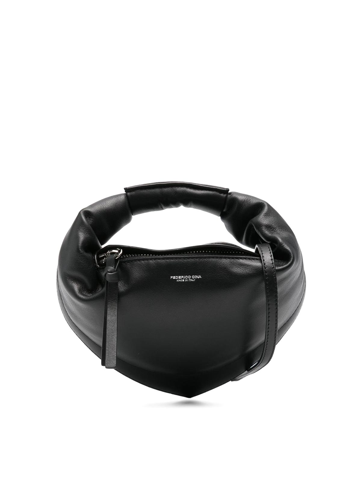 Sac à main « mini tortellino » noir de Federico Cina avec fermeture éclair sur le dessus et bandoulière réglable et amovible