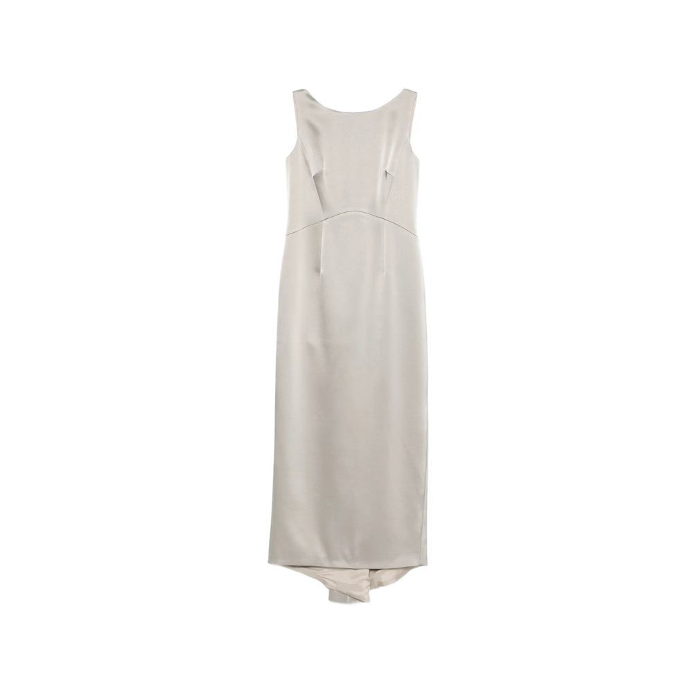 light grey sleeveless mid-length below-the-knee length