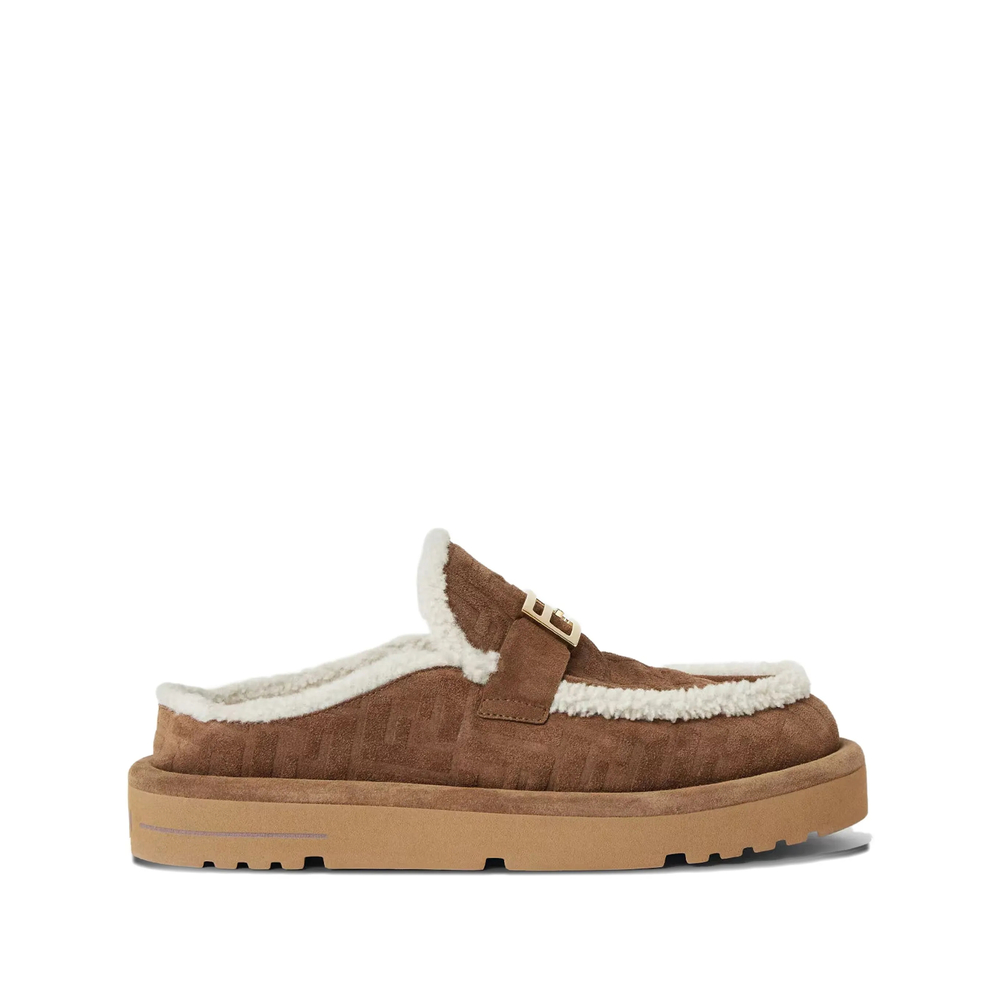 brown FF-motif shearling trim gold-tone hardware flat sole