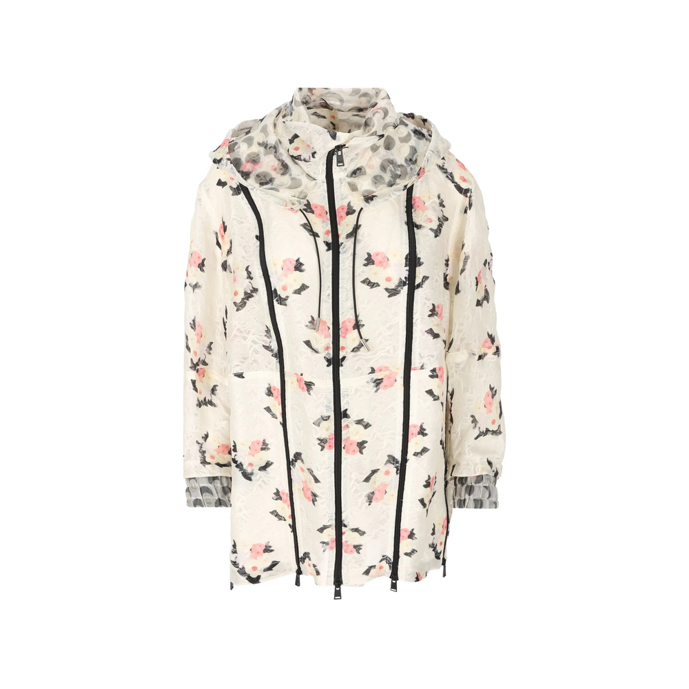 white floral print zip fastening hooded chest pocket