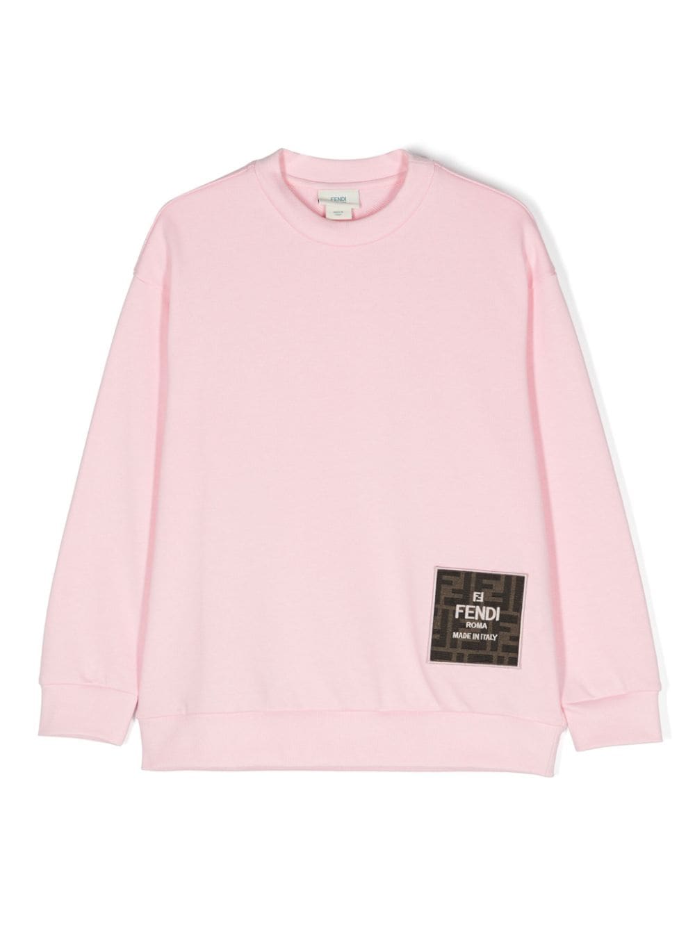 bubblegum pink cotton jersey texture ribbed crew neck drop shoulder long sleeves ribbed cuffs FF motif appliqué logo ribbed hem