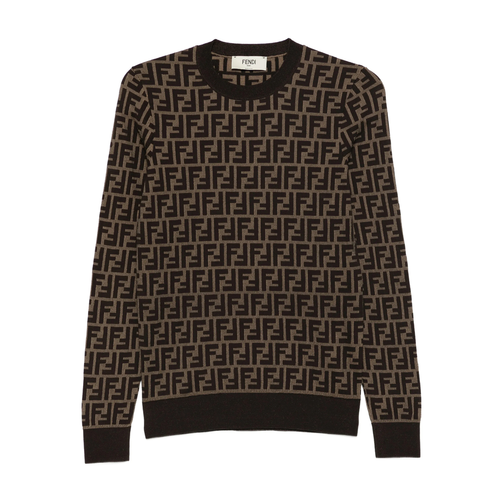 brown logo pattern round neck long sleeves ribbed hem ribbed cuffs