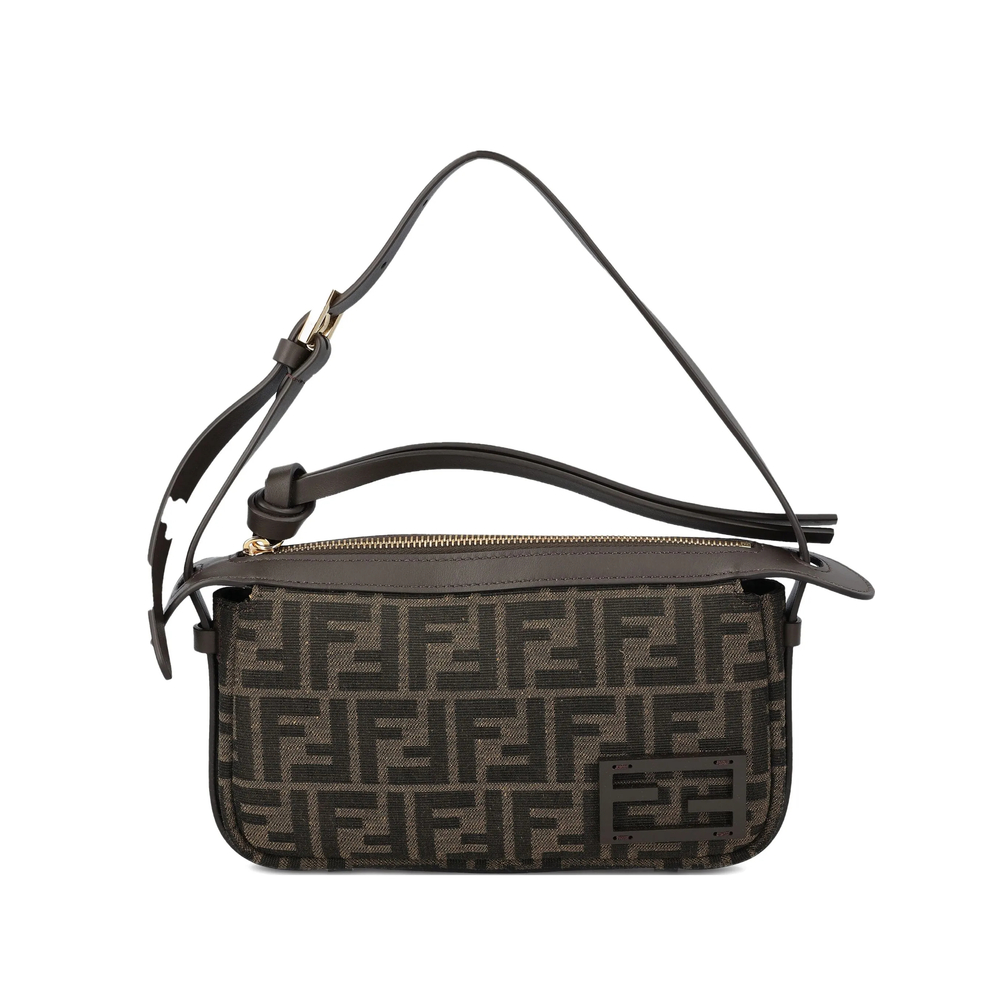 brown FF monogram pattern leather trim top zip fastening adjustable shoulder strap logo plaque