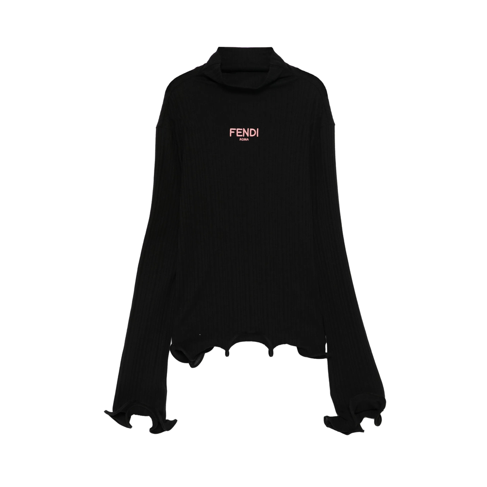 black ruffled cuffs long sleeves ribbed knit logo detail