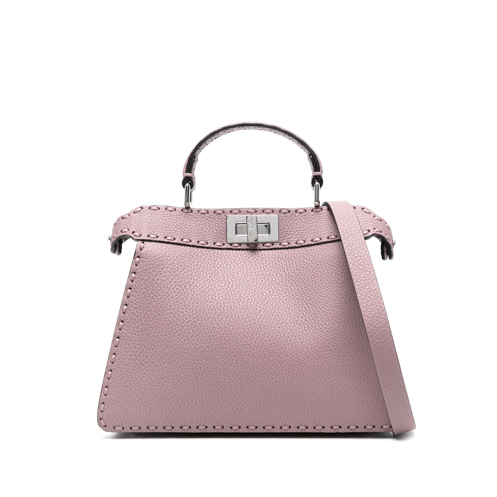 light purple twist-lock fastening single flat top handle adjustable detachable shoulder strap This piece comes complete with a protective dust bag.