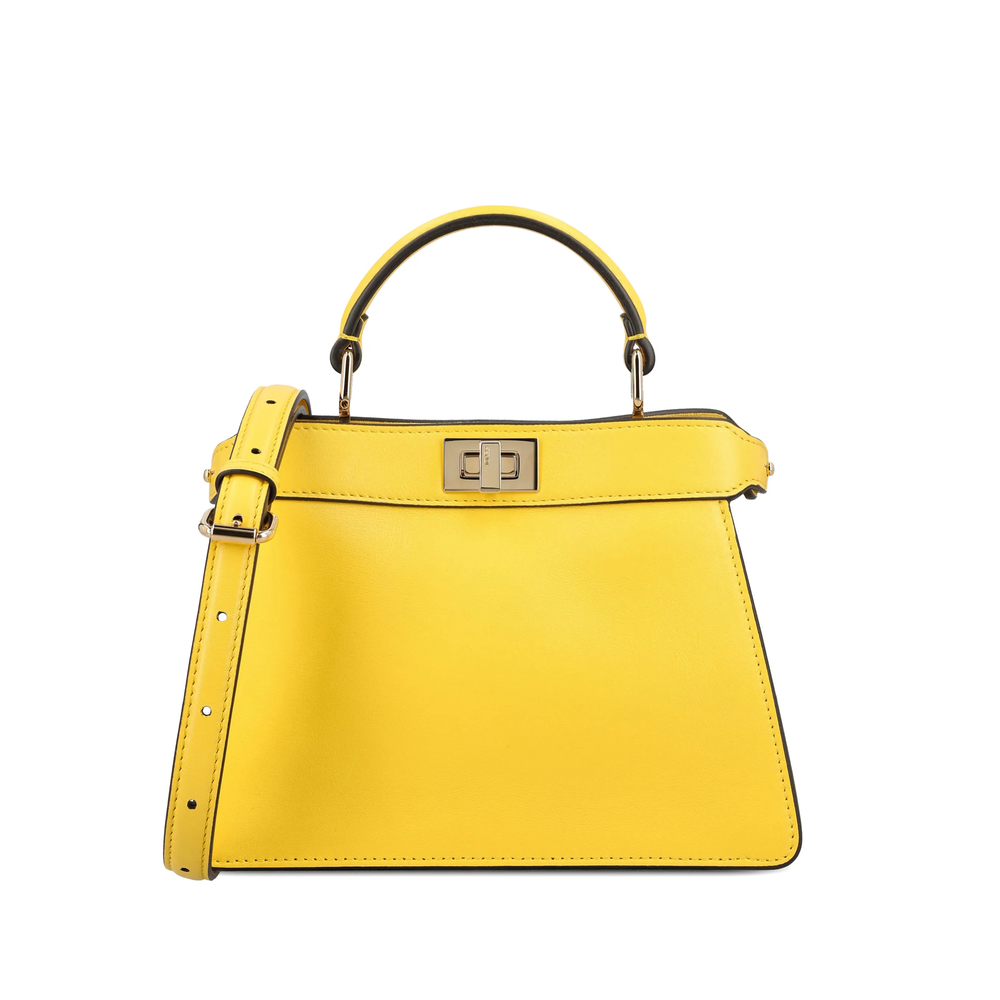 yellow top handle detachable adjustable shoulder strap gold-tone hardware twist-lock fastening