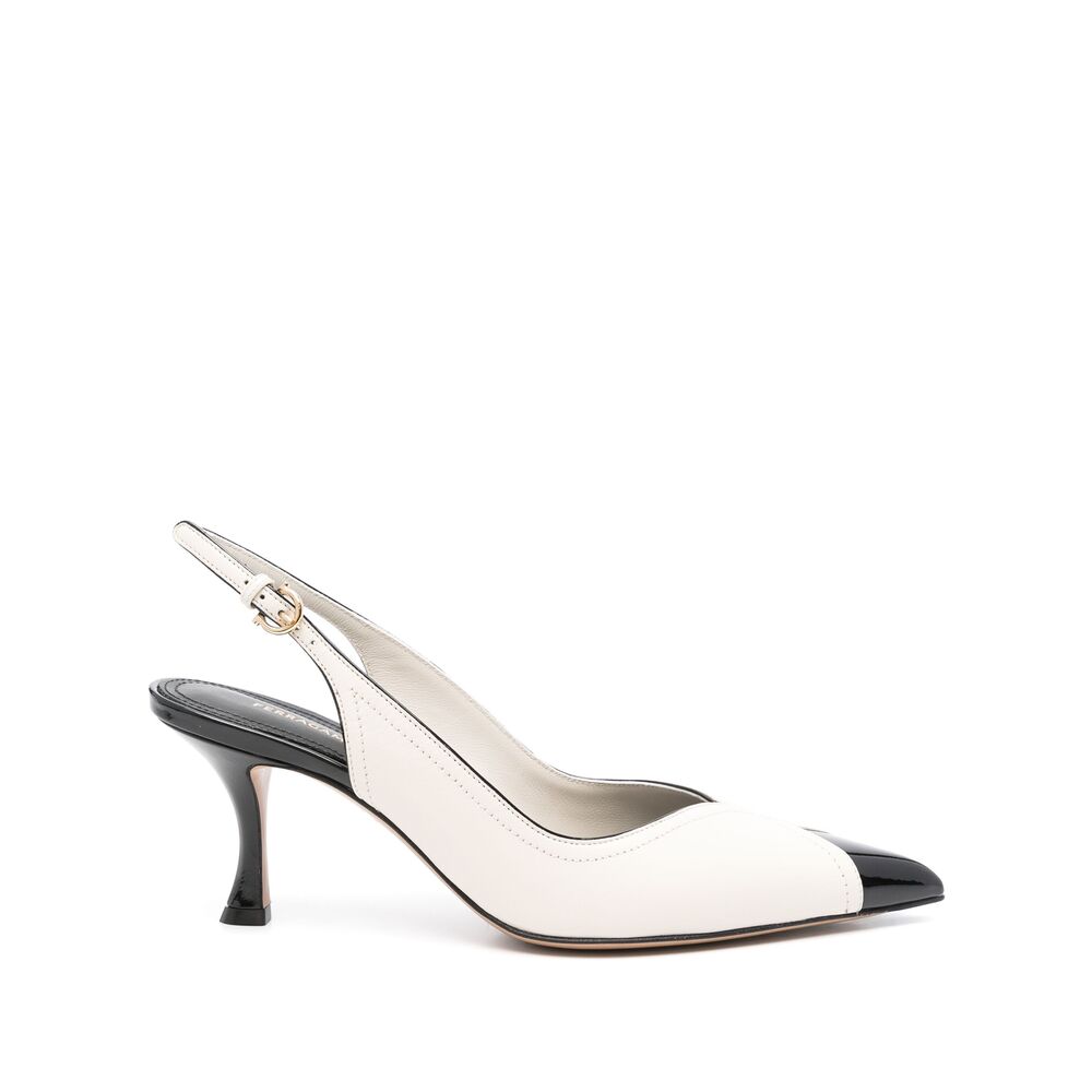 ecru buckle-fastening slingback strap mid sculpted heel pointed toe contrasting toecap