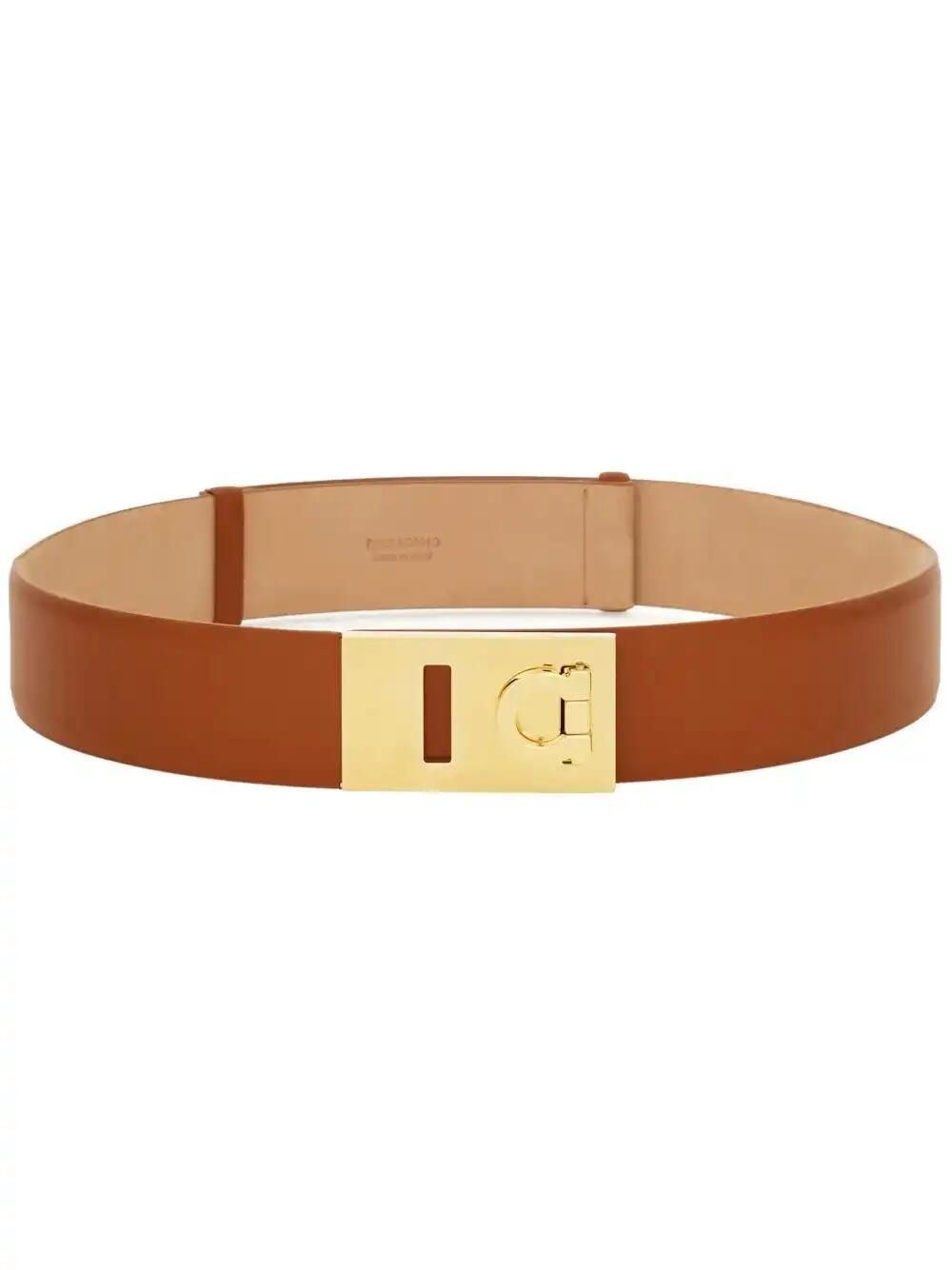 cognac brown calf leather Gancini buckle gold-tone hardware adjustable fit