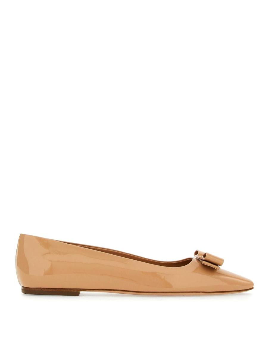 Ballerines à naud Vara de la marque Ferragamo avec finition beige et naud à bout pointu brodé et plat Nom de la couleur du créateur: marron