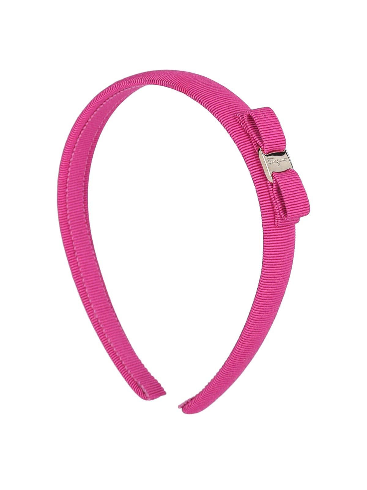 Bandeau Ferragamo Vara en gros grain fuchsia, naud vara appliqué, logo gravé sur une plaque en laiton argenté
