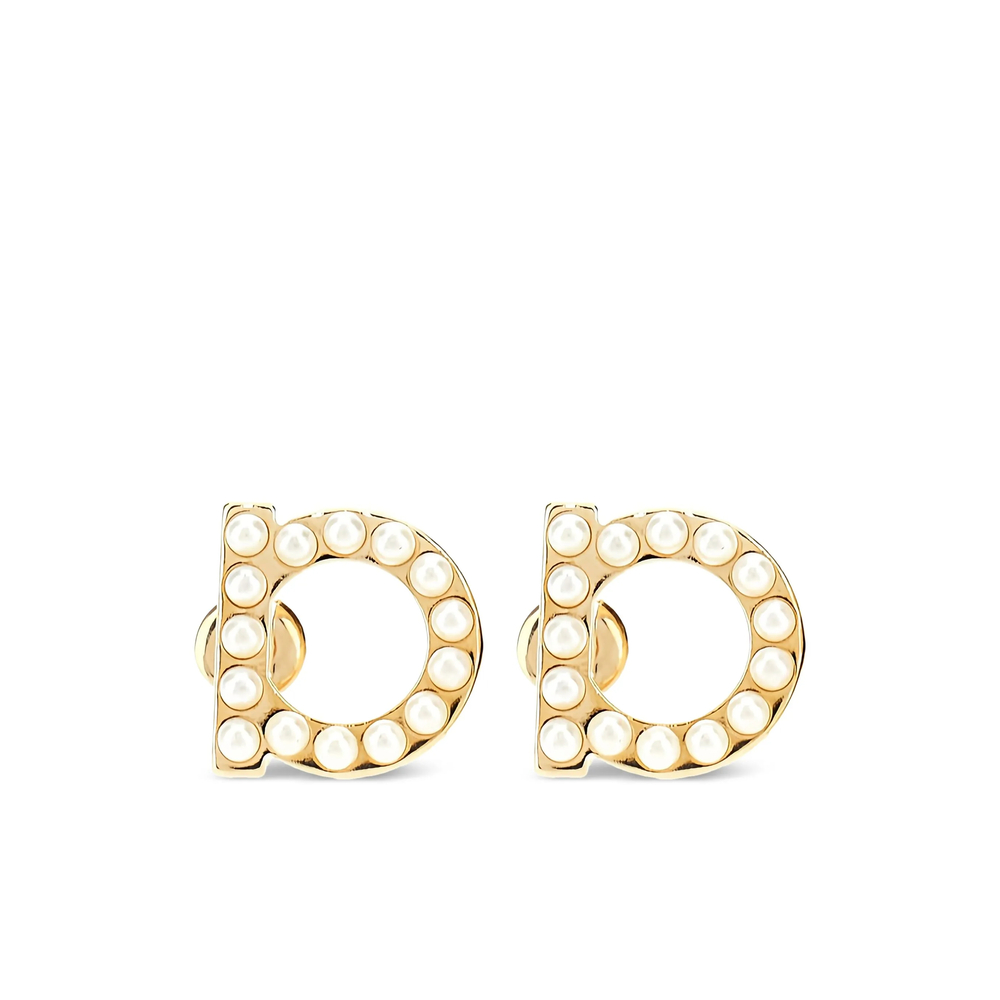 gold-tone polished finish stud design Gancini logo studs bead embellishment butterfly fastening for pierced ears These earrings come as a pair.