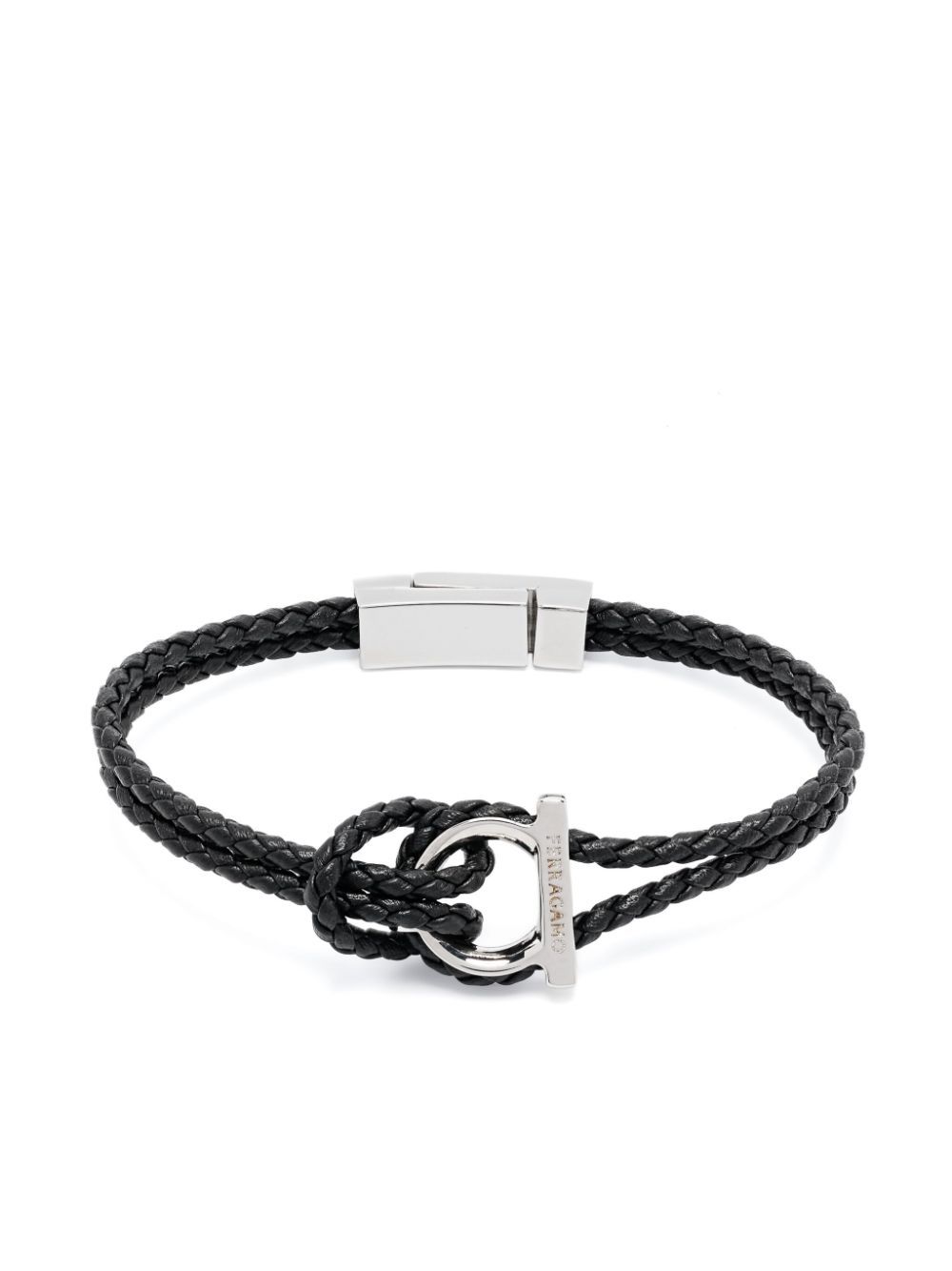 black magnetic fastening logo-engraved silver-tone hardware braided strap
