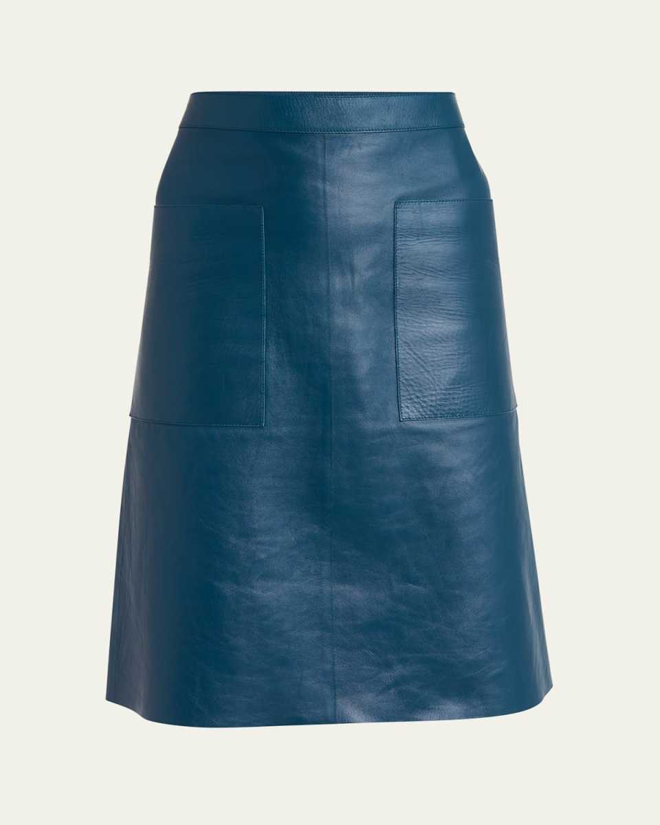 Ferragamo "Moon Chrome Free" lambskin leather skirt High waist Aline silhouette Knee length Side pockets Zip closure Made in Italy
