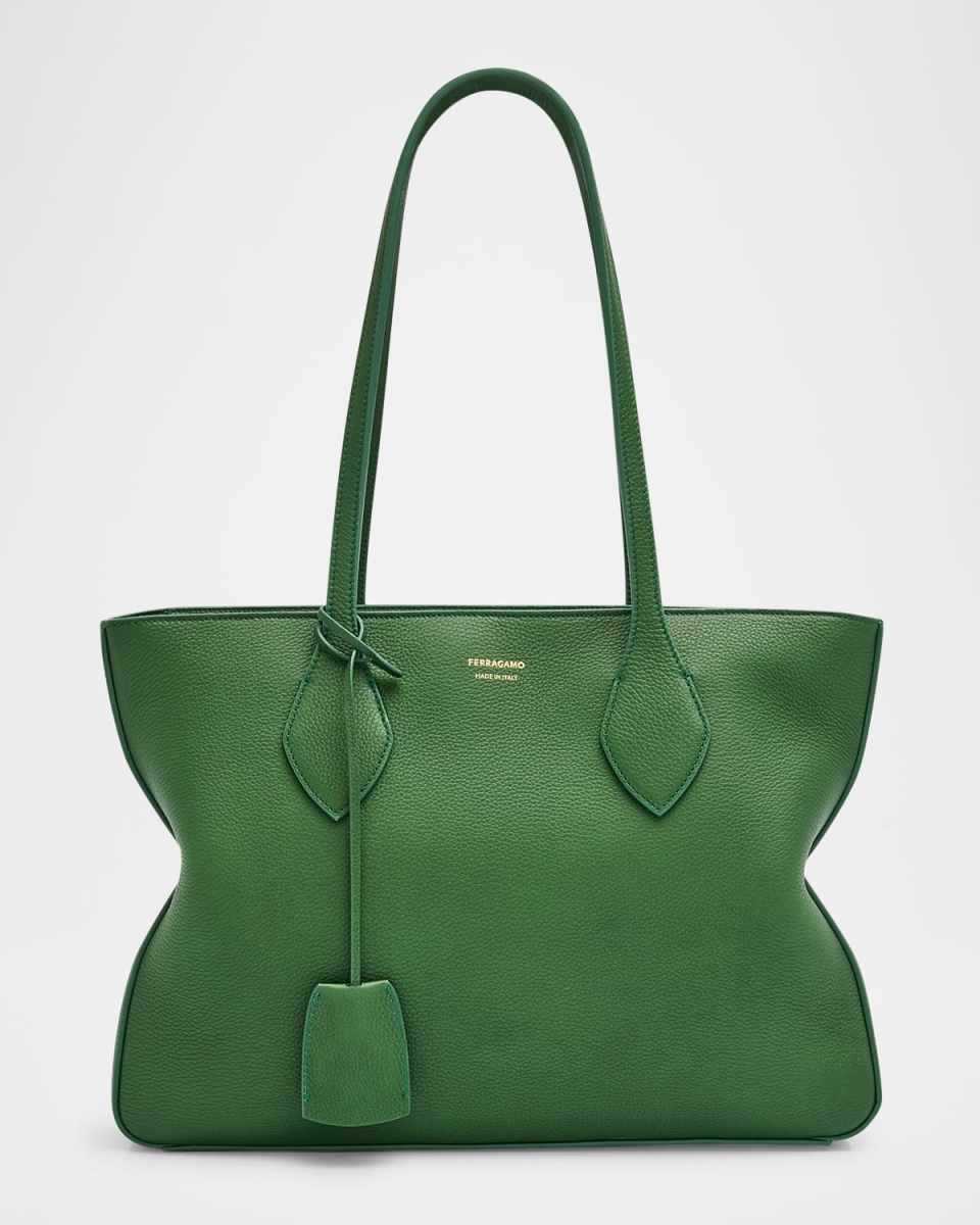 Ferragamo "Star" shoulder bag in leather Shoulder straps with keyring tag Zip top closure Interior, one zip pocket Approx. 11.8"H x 16.5"W x 4.3"D Made in Italy