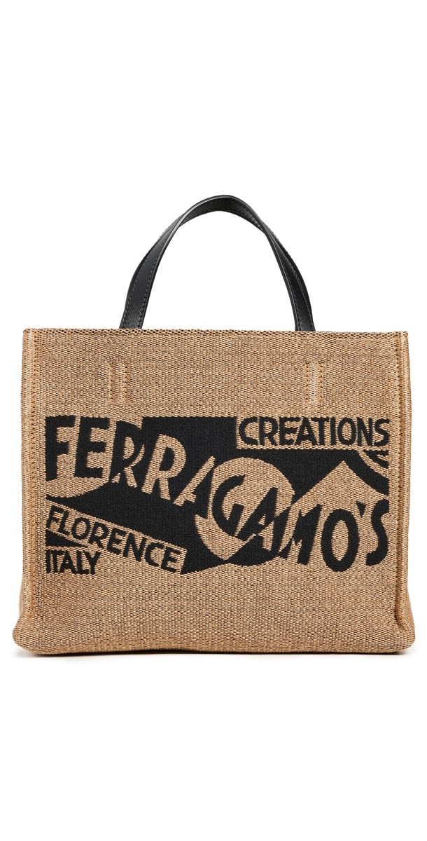 Woven raffia. Leather handles and trim. Logo pattern at side. Open top. Zip interior pocket. Optional, adjustable strap. Lining: Textile. Weight: 16oz / 0.45kg. Made in Italy. Measurements: Height: 8.75in / 22cm Length: 10.25in / 26cm Depth: 5.5in / 14cm Strap drop: 20in / 51cm Handle drop: 3.5in / 9cm
