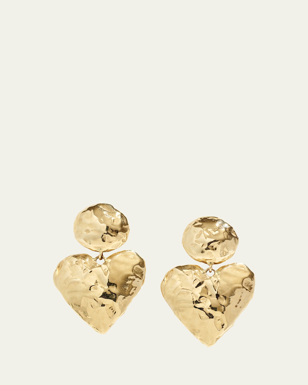 Fie Isolde bold heart earrings Approx. 1.38" length x 0.9" width Hand sculpted and cast in 14karat solid gold Features a highpolish finish For pierced ears Butterfly backs Made in USA