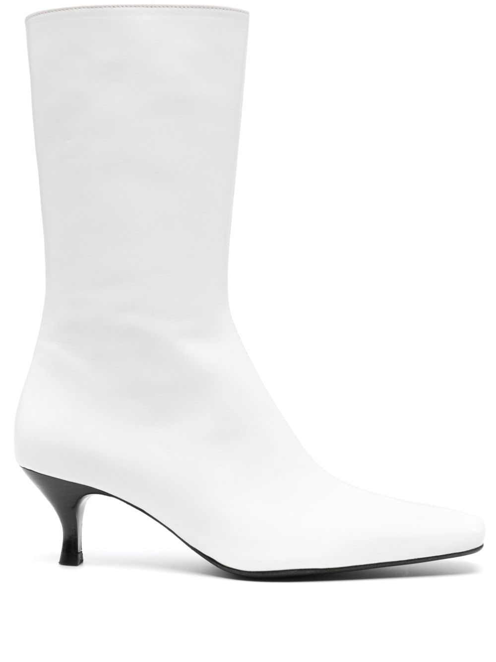 milk white calf leather square toe side zip fastening low heel ankle-length