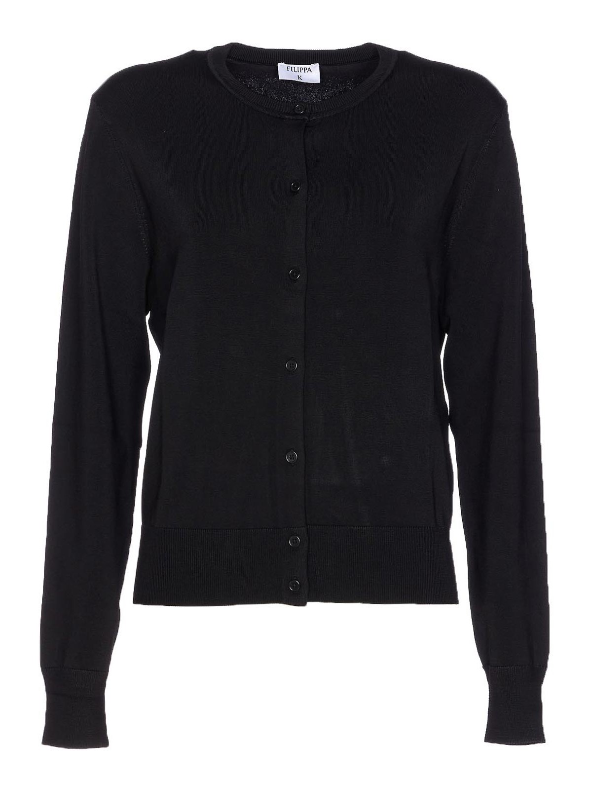 Cardigan en maille brillante noir Filippa K avec boutons frontaux, col rond et manches longues Nom de la couleur du créateur: noir