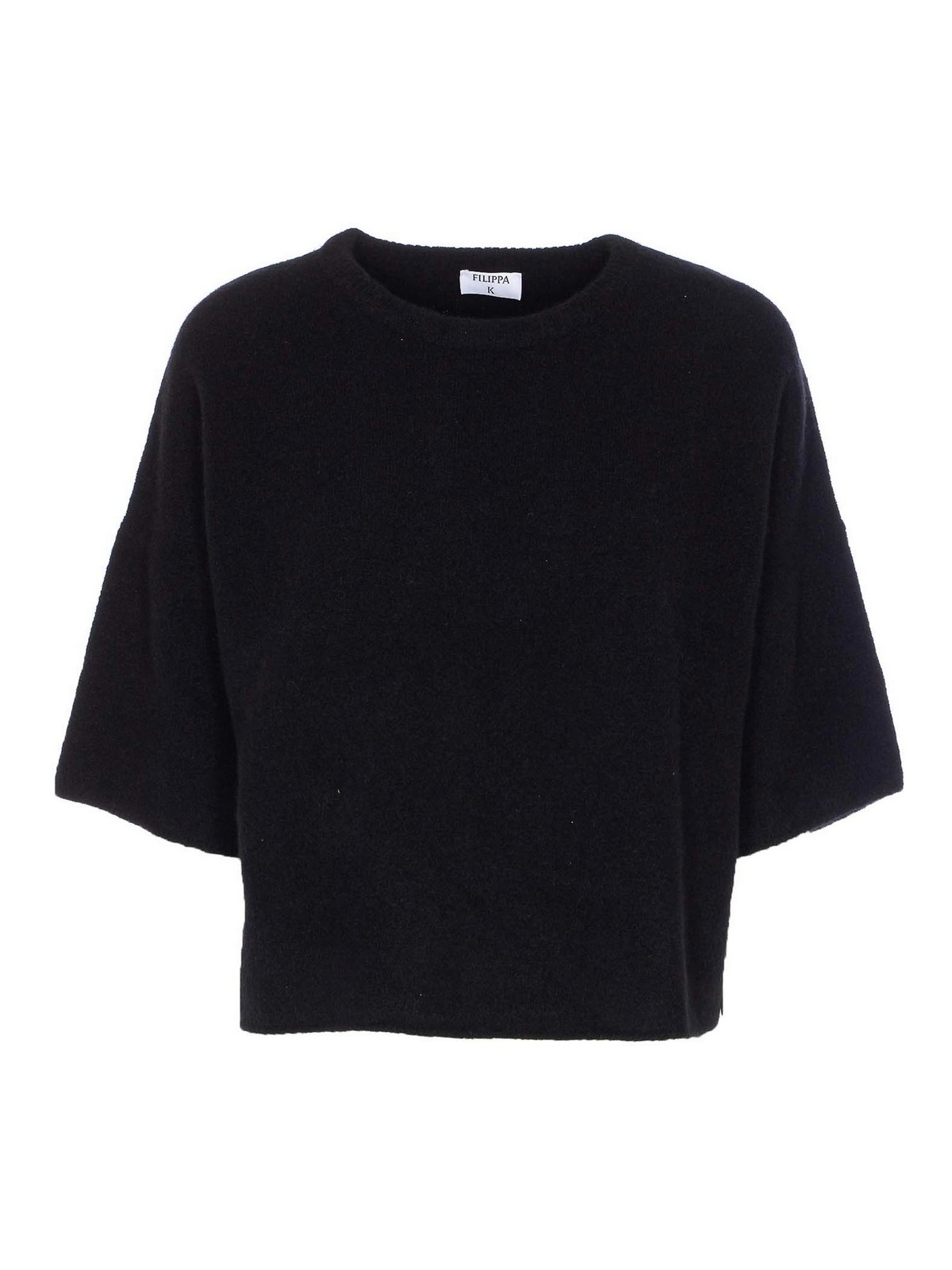 Pull noir Filippa K à col rond et manches courtes Nom de la couleur du créateur: noir