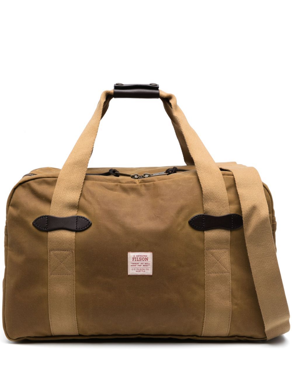 geode brown cotton canvas logo patch to the front two rolled top handles detachable shoulder strap top zip fastening main compartment