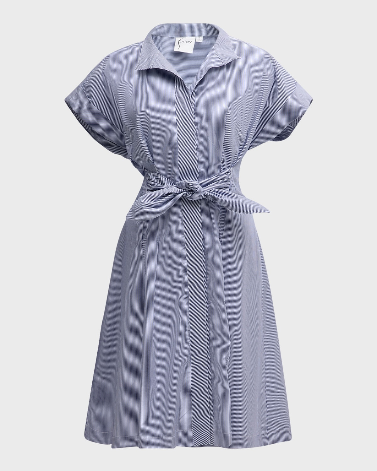 Finley "Rocky" striped shirtdress with cinching waist seams Approx. 38"L from shoulders to hem Stand collar; concealed button front Short sleeves; approx. 3"L Waist selftie Hem hits around the knee Aline silhouette Cotton Unlined Machine wash cold Made in the USA from imported materials