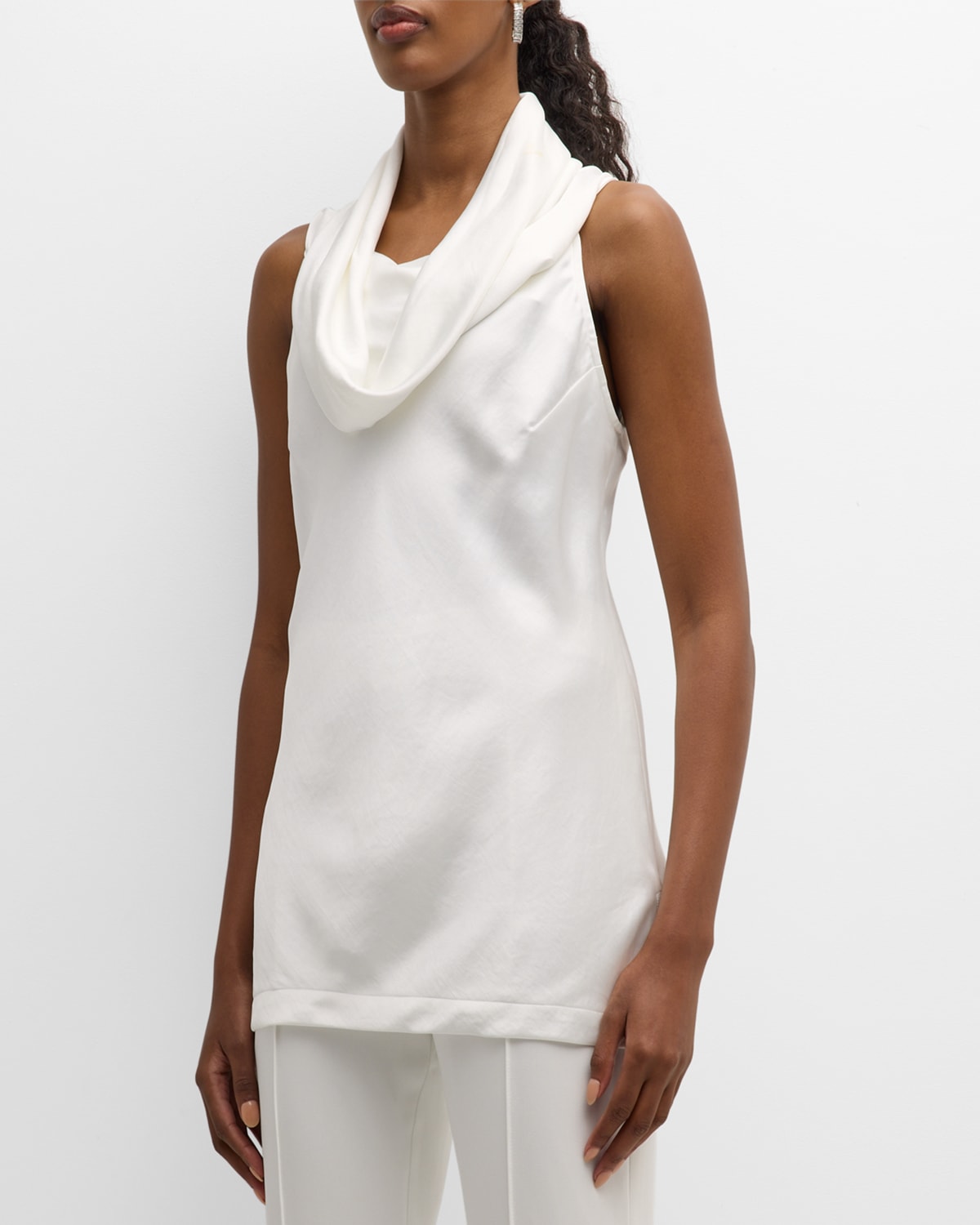 Sleeveless Cowl-Neck Hammered Satin Top