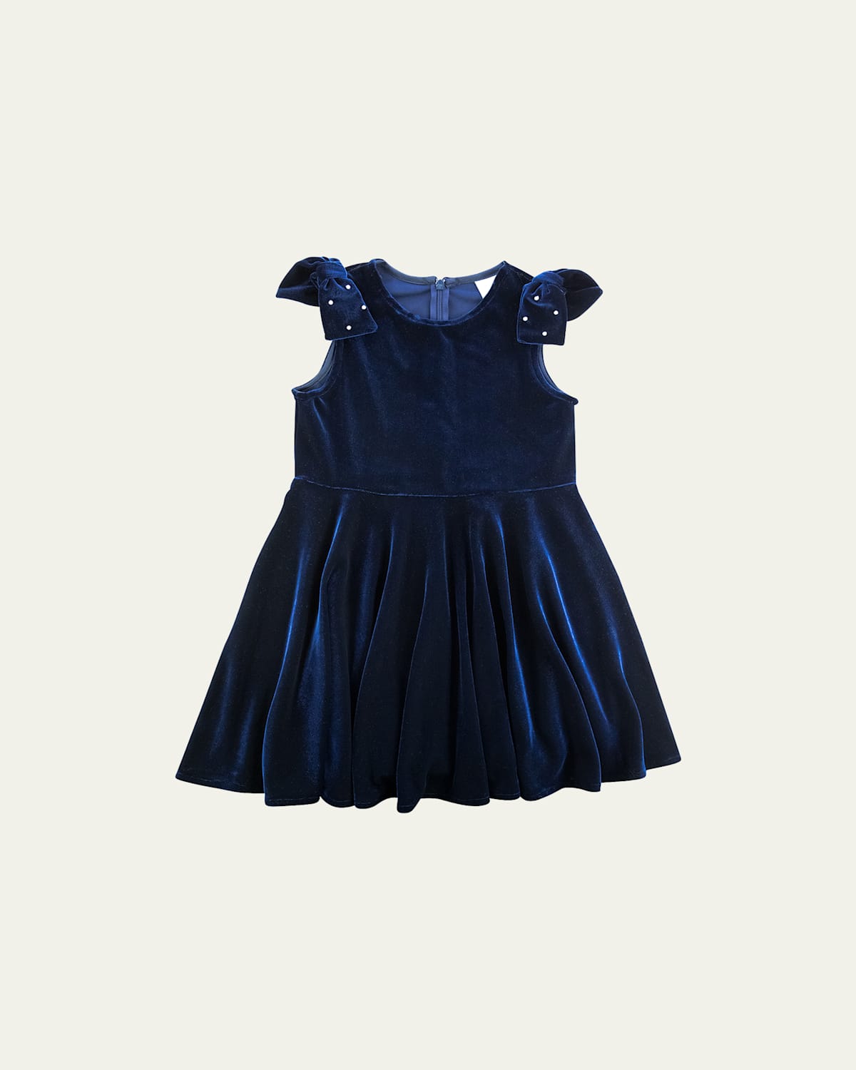 Girl's Velvet Dress W/ Bow Pearls, Size 4T-1