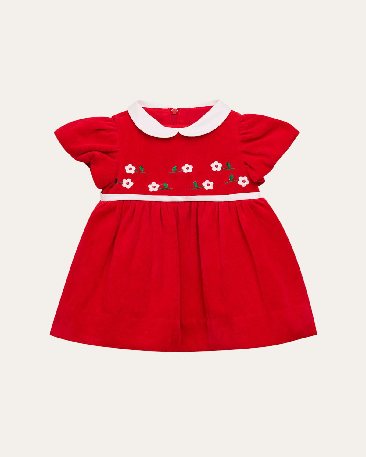 Girl's Velvet Waist Dress with Flowers, Size 6M-24