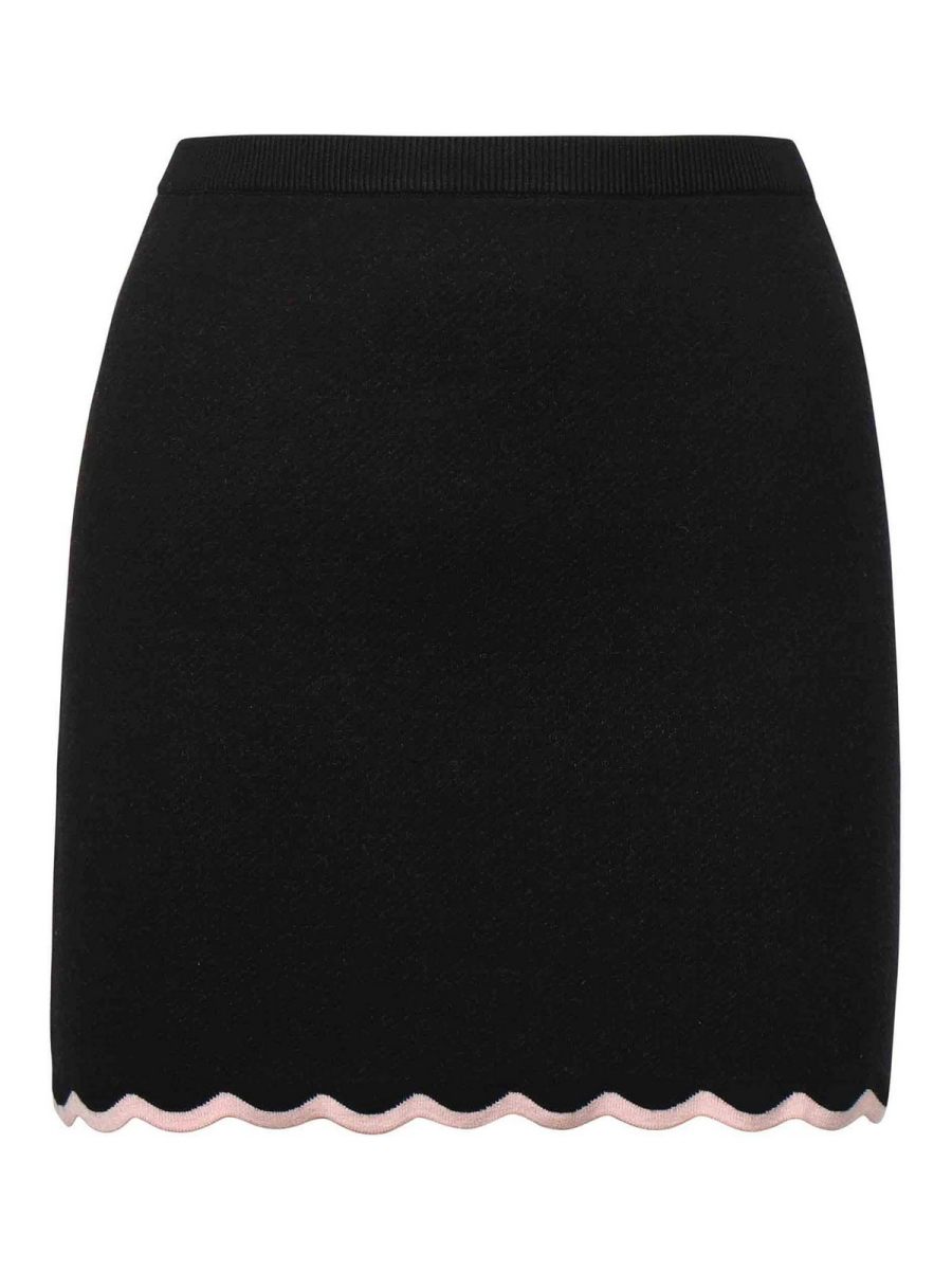 Jupe Donella, effet cousu à la main, bord ondulé final, coupe ajustée, couleur noire