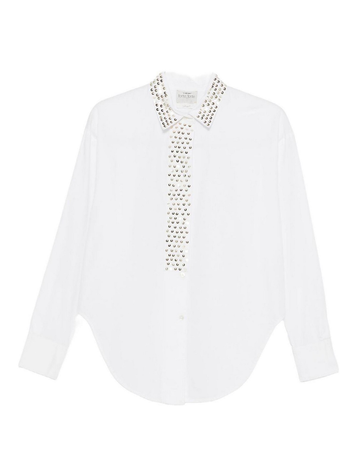 Clou en popeline blanche, décoration au col central, décoration à clous, manches longues, ourlet incurvé