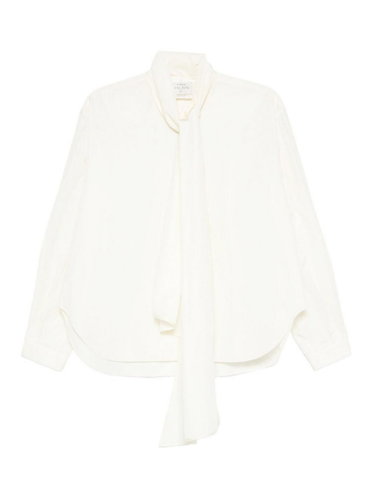 Col papillon blanc cassé, manches longues, ourlet incurvé