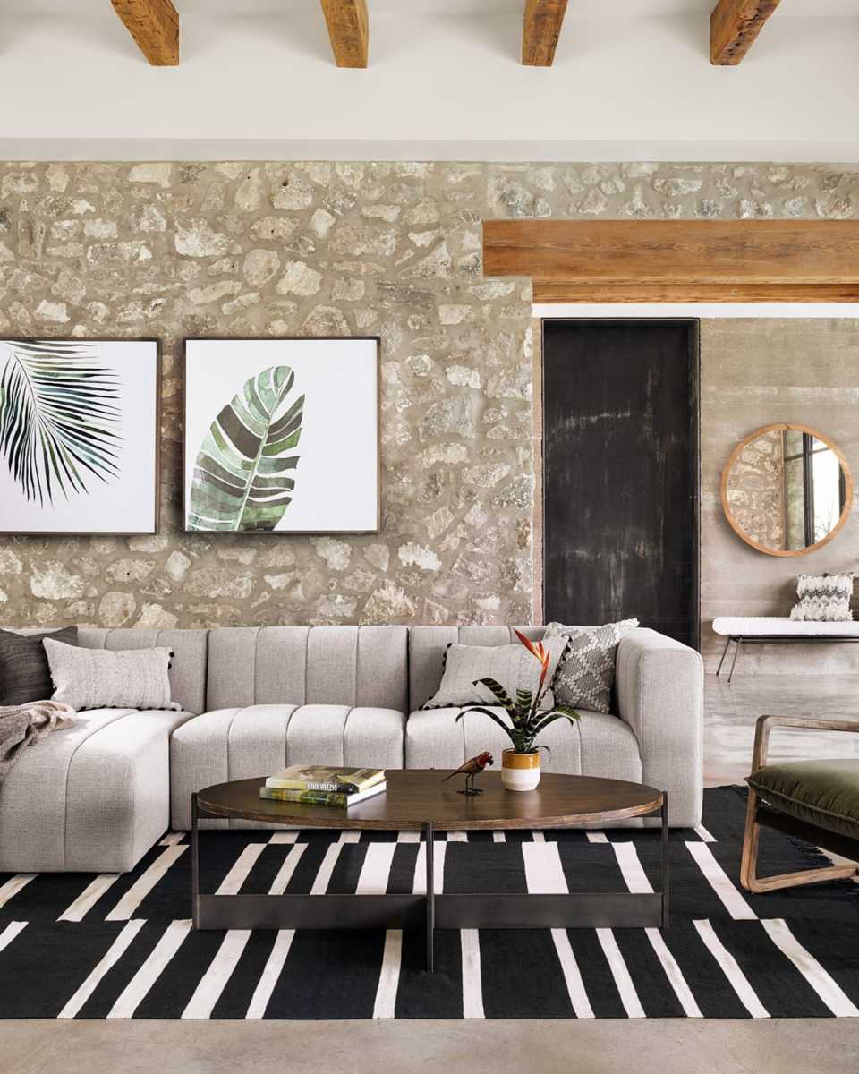 Handcrafted sectional with left chaise. Birch frame. Fabric: polyester. Foam/fiber seat cushion. Overall: 158"W x 67"D x 28"T. Arm height: 28" from floor. Imported. Boxed weight, approximately 250 lbs.