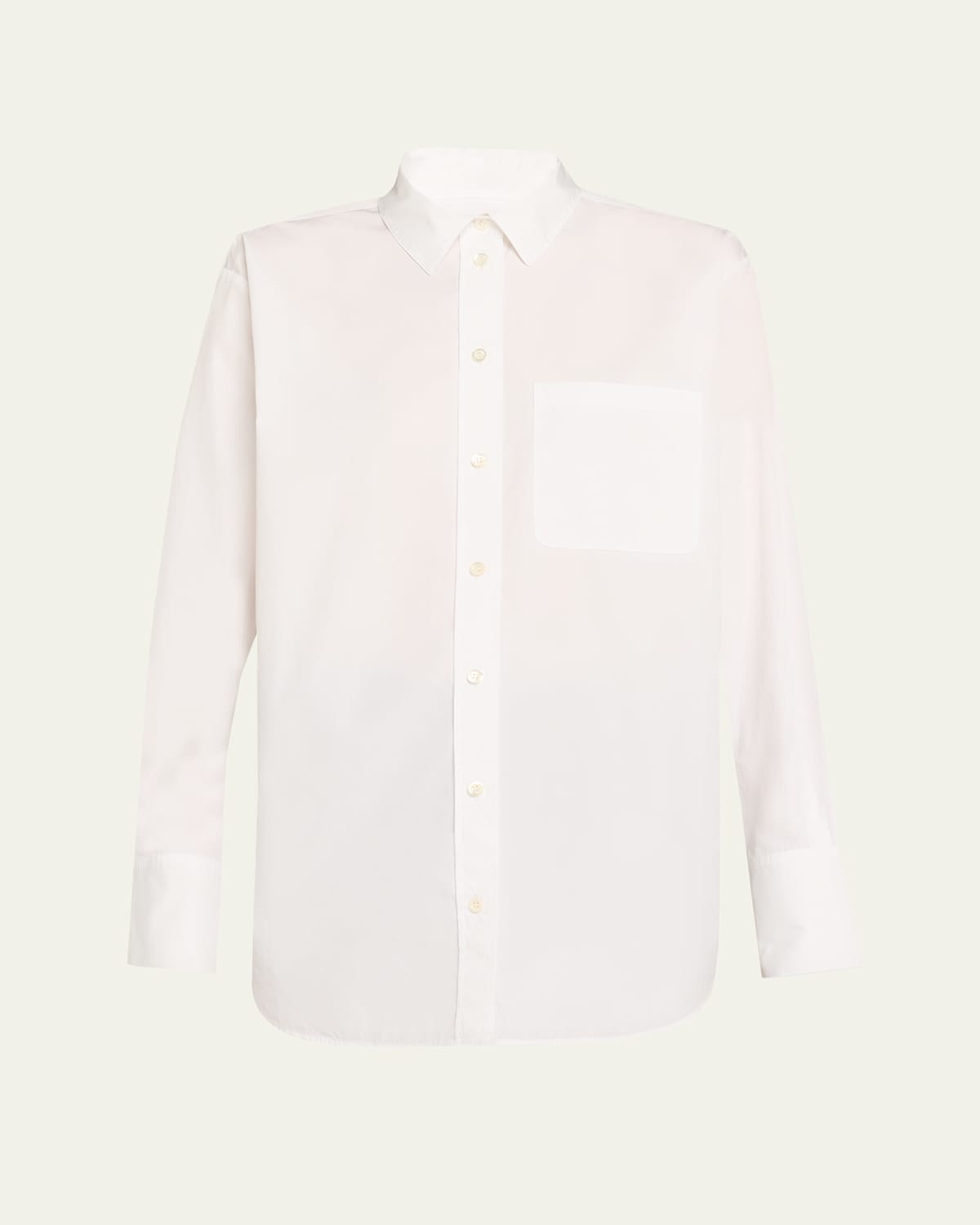 FRAME "The Boy Shirt" in crisp cotton poplin Point collar Long sleeves with button cuffs Chest pocket Relaxed, oversized fit Hem falls to the hip Buttonfront Cotton Machine wash cold Imported